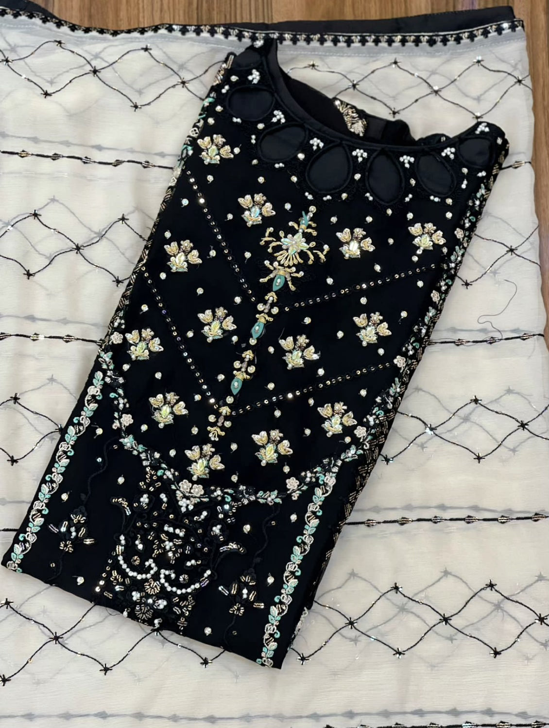 Black and ivory chiffon suit