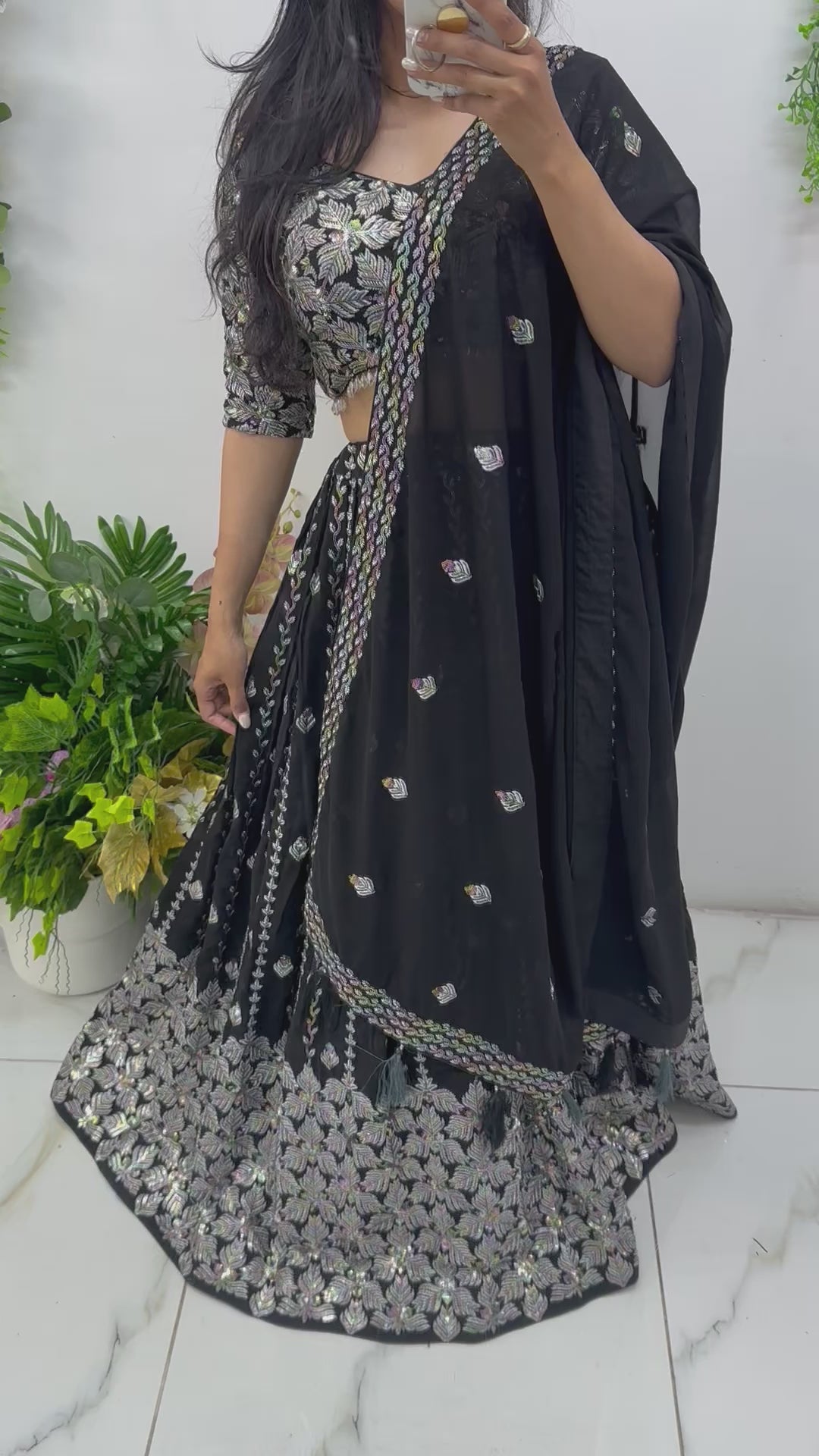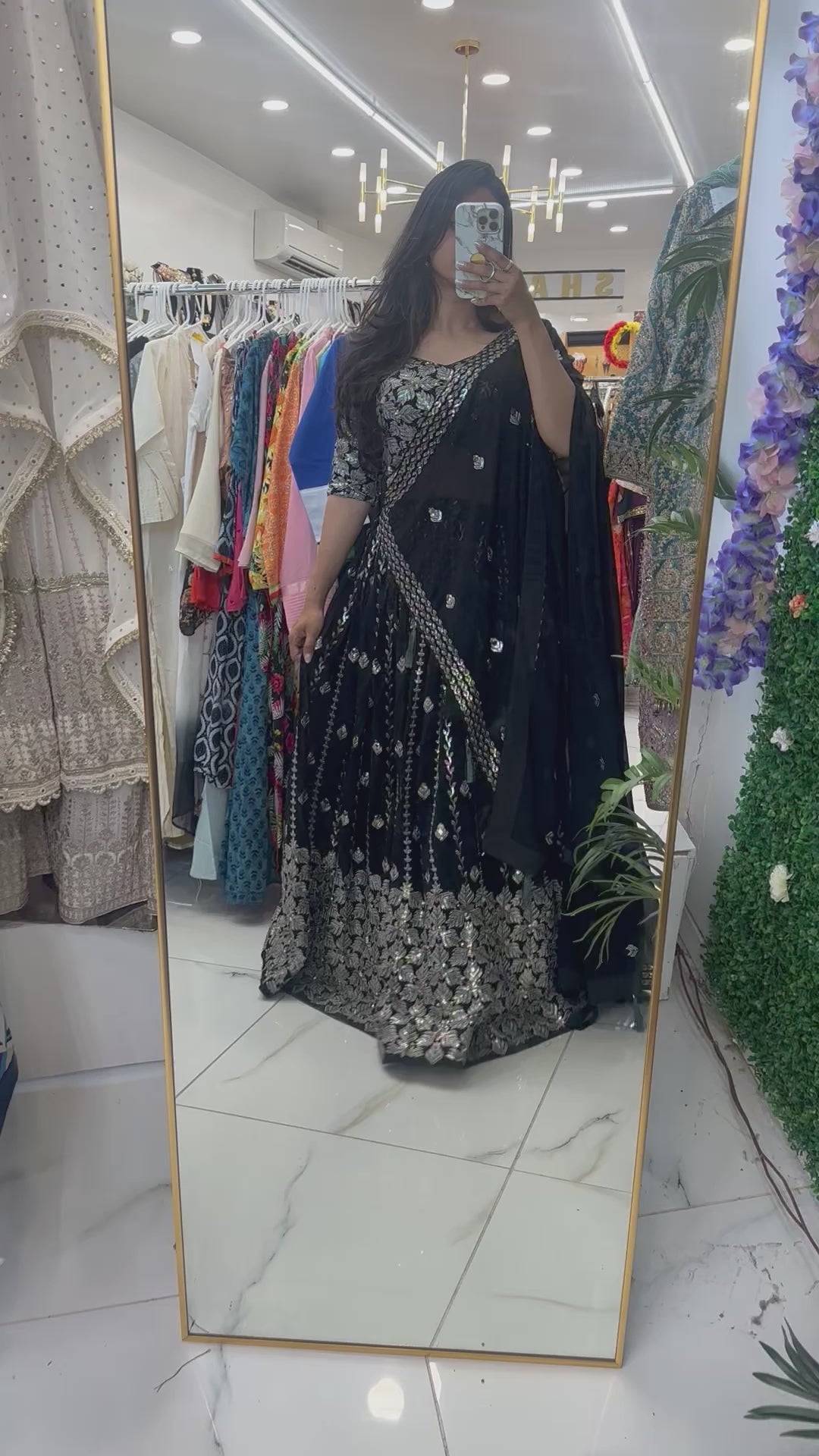 Heavy georgette material with beautiful thin embroidery all over & heavy sequined details
