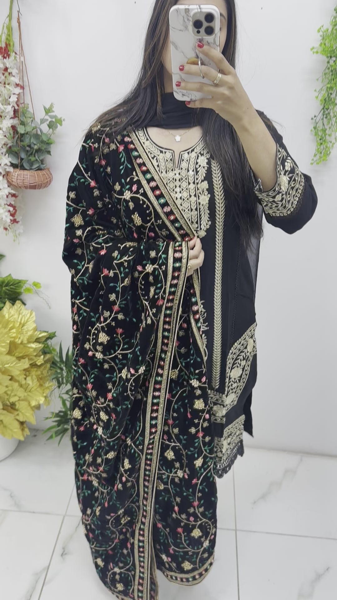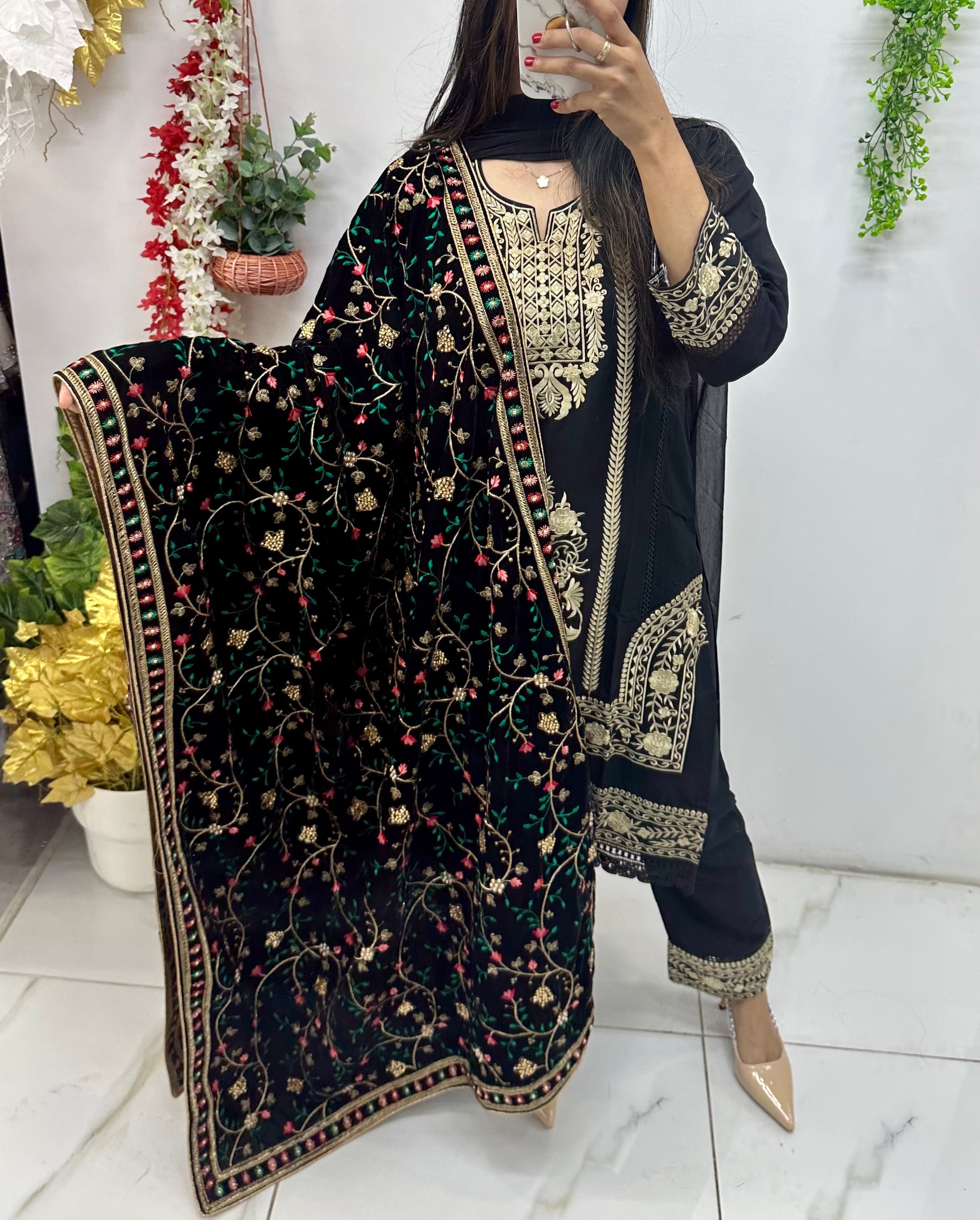 Black velvet heavy embroidered shawl