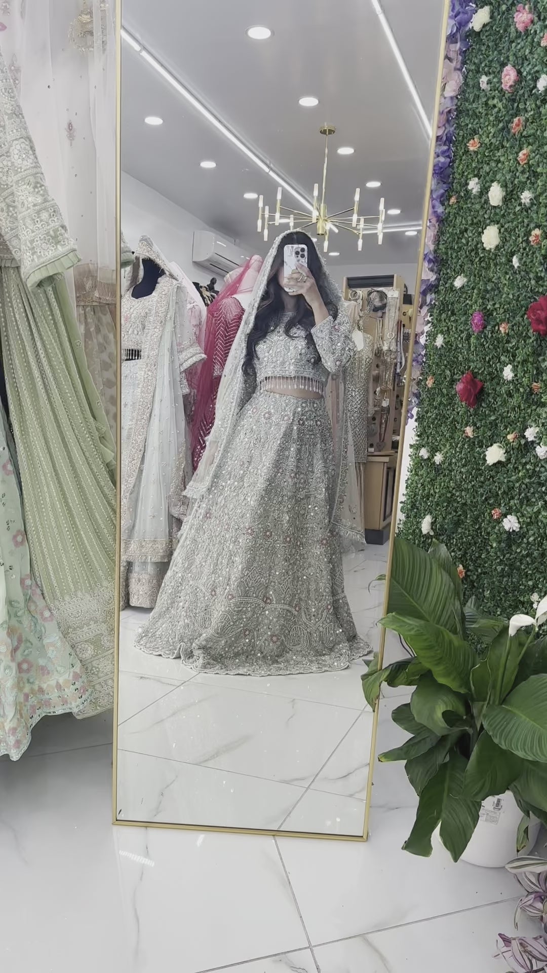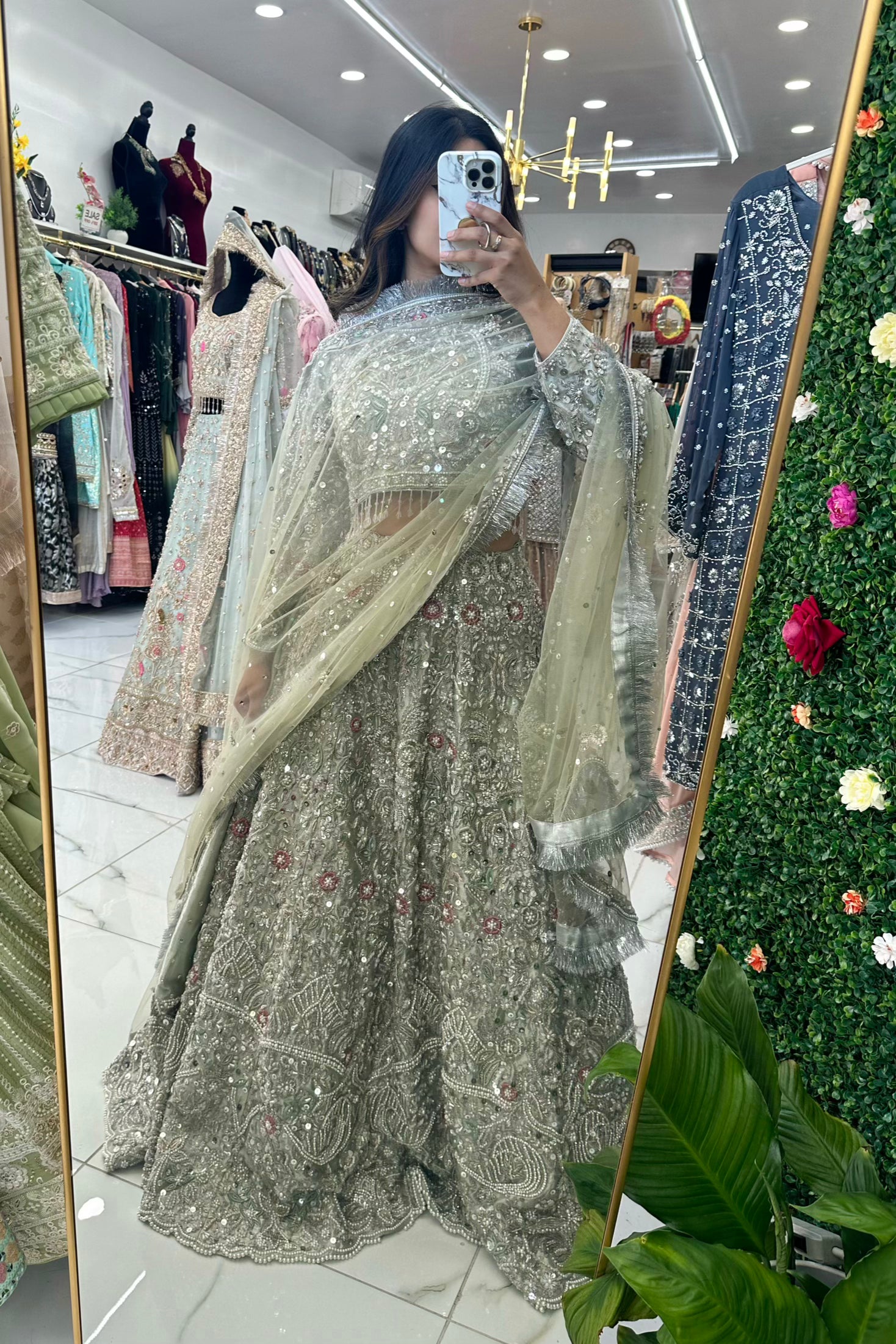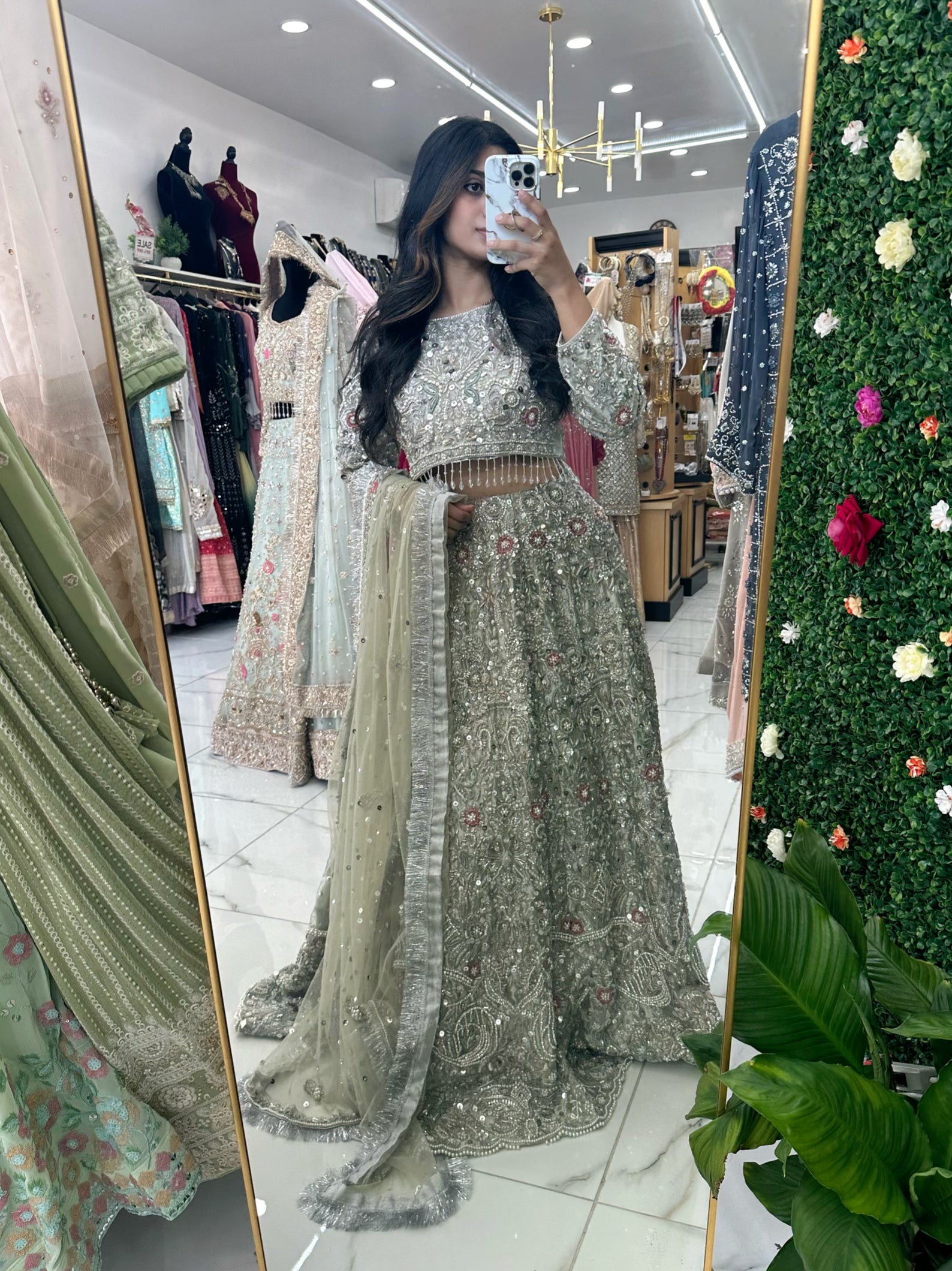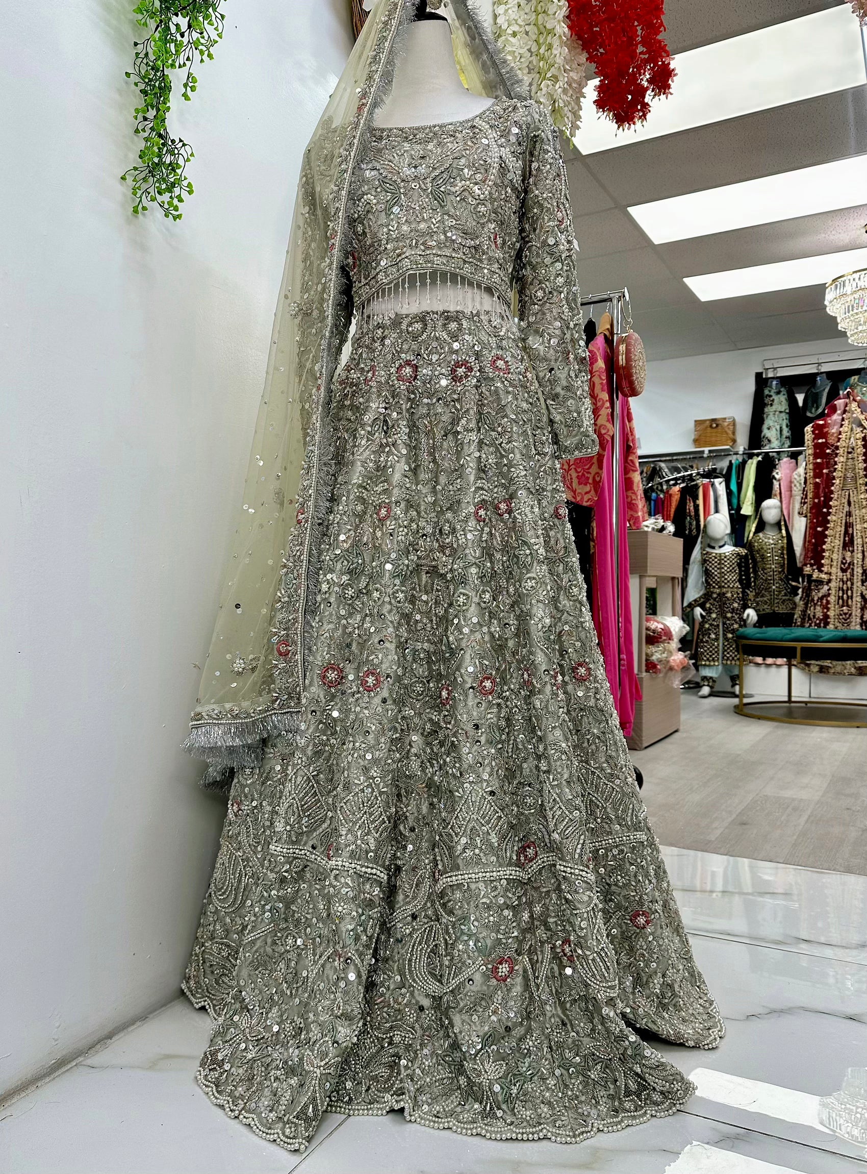 Bridal silver lehenga with heavy jewelry bead work