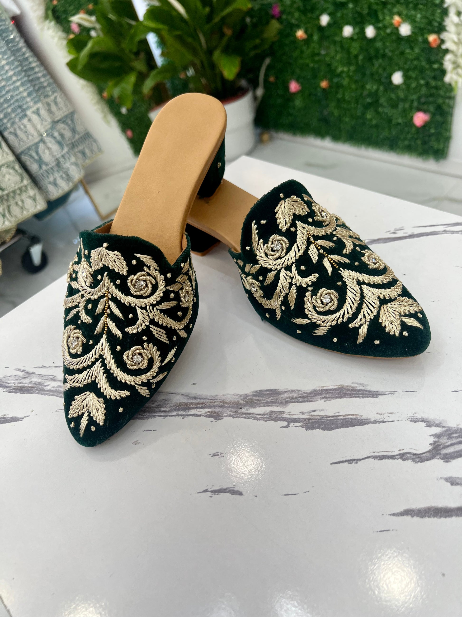 All hand made hand beaded designs. 1 & 1/2 inch heels. Panjabi made. Match the sizes with your American size. If you wear a size 8 in Aldo heels or any American heels then pick size 8 here.