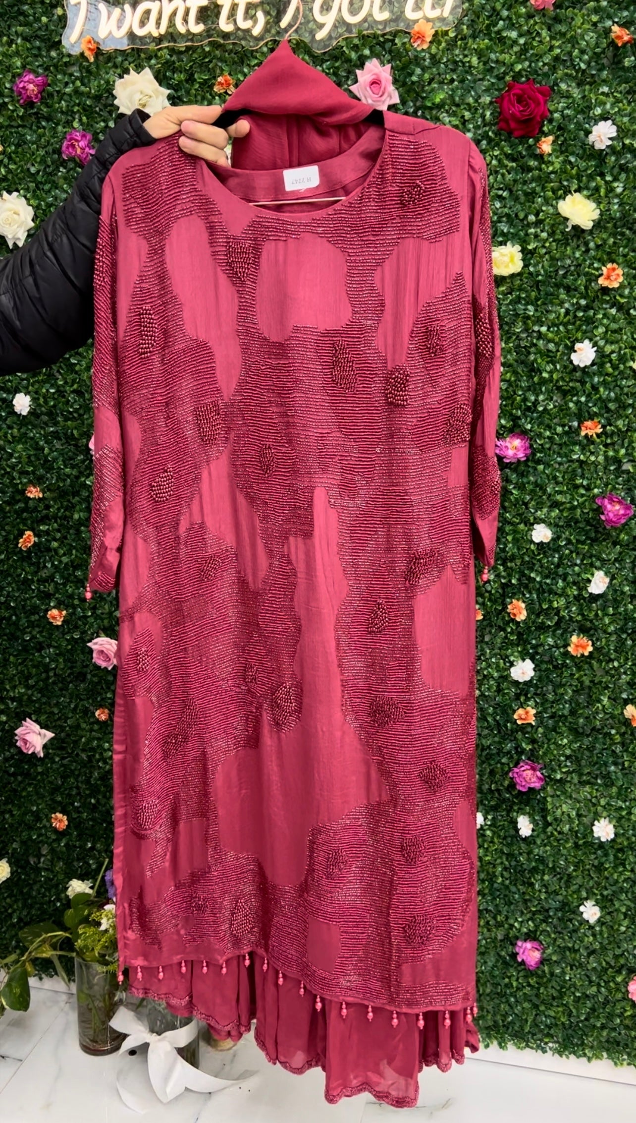Deep mauve hand work silk suit