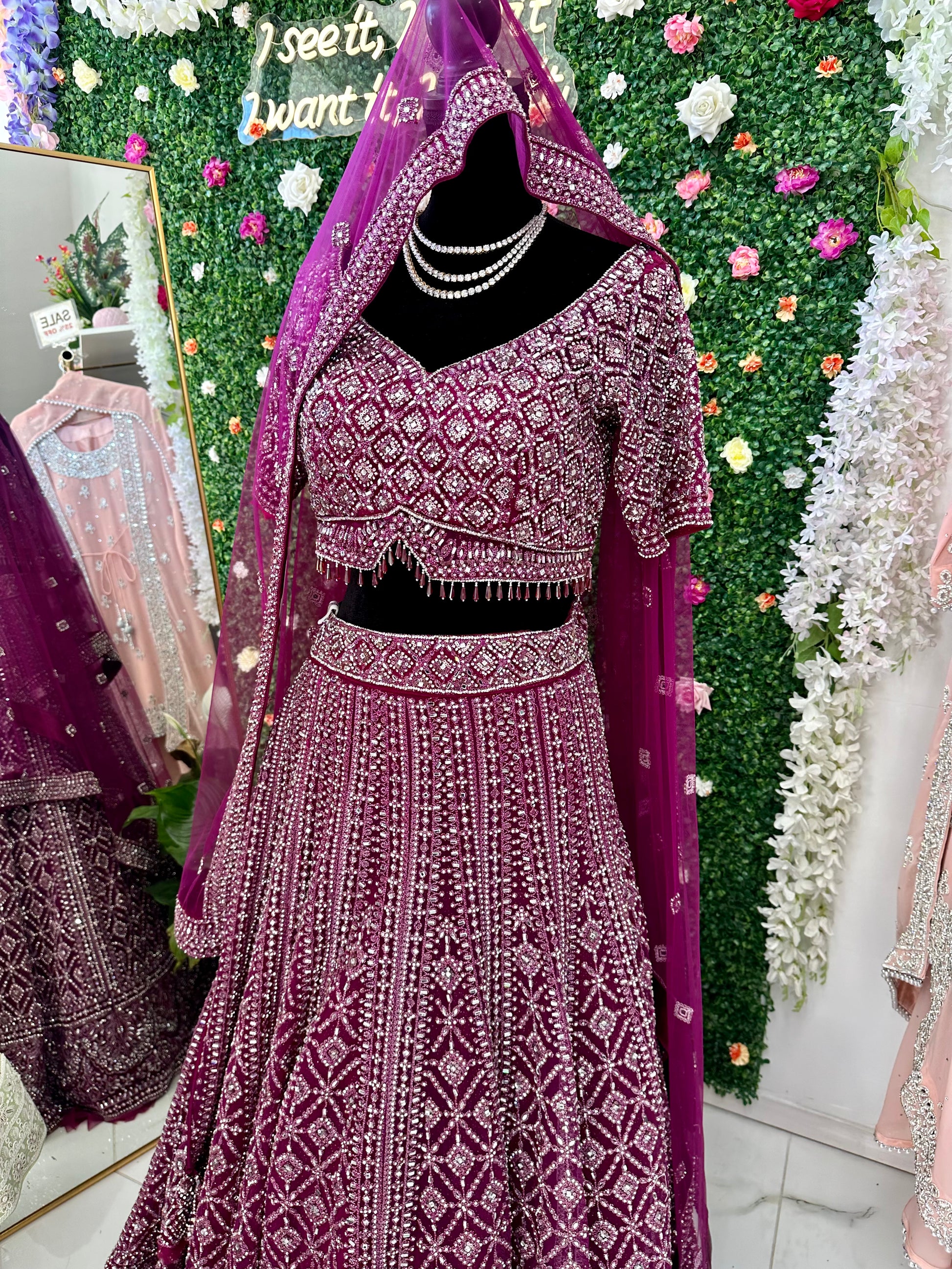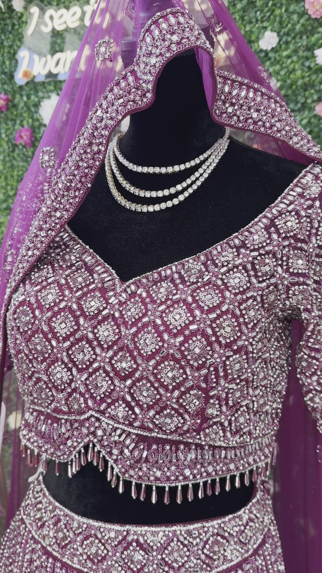 Heavy bridal lehenga made in net fabric with all over embroidery and intricate stone work