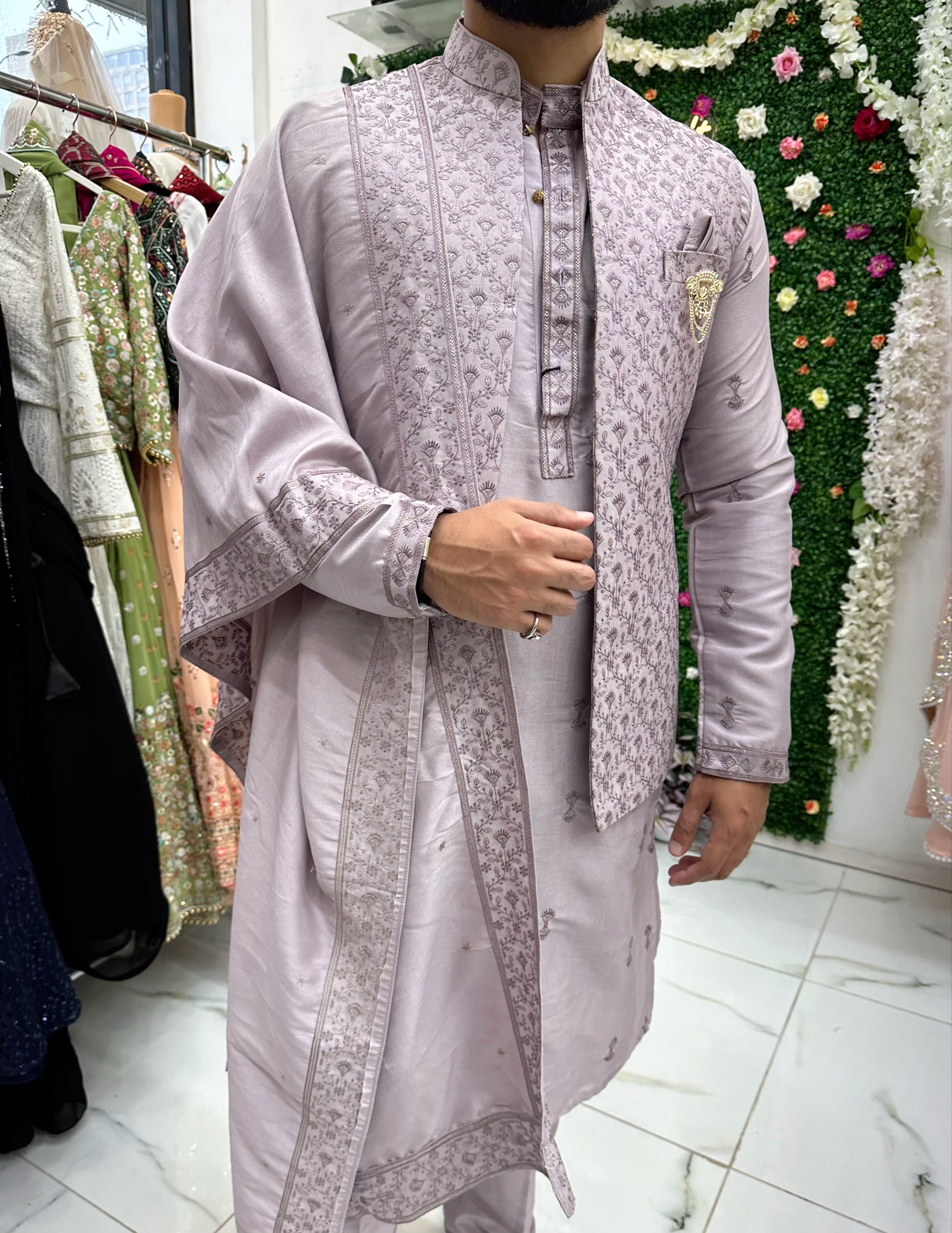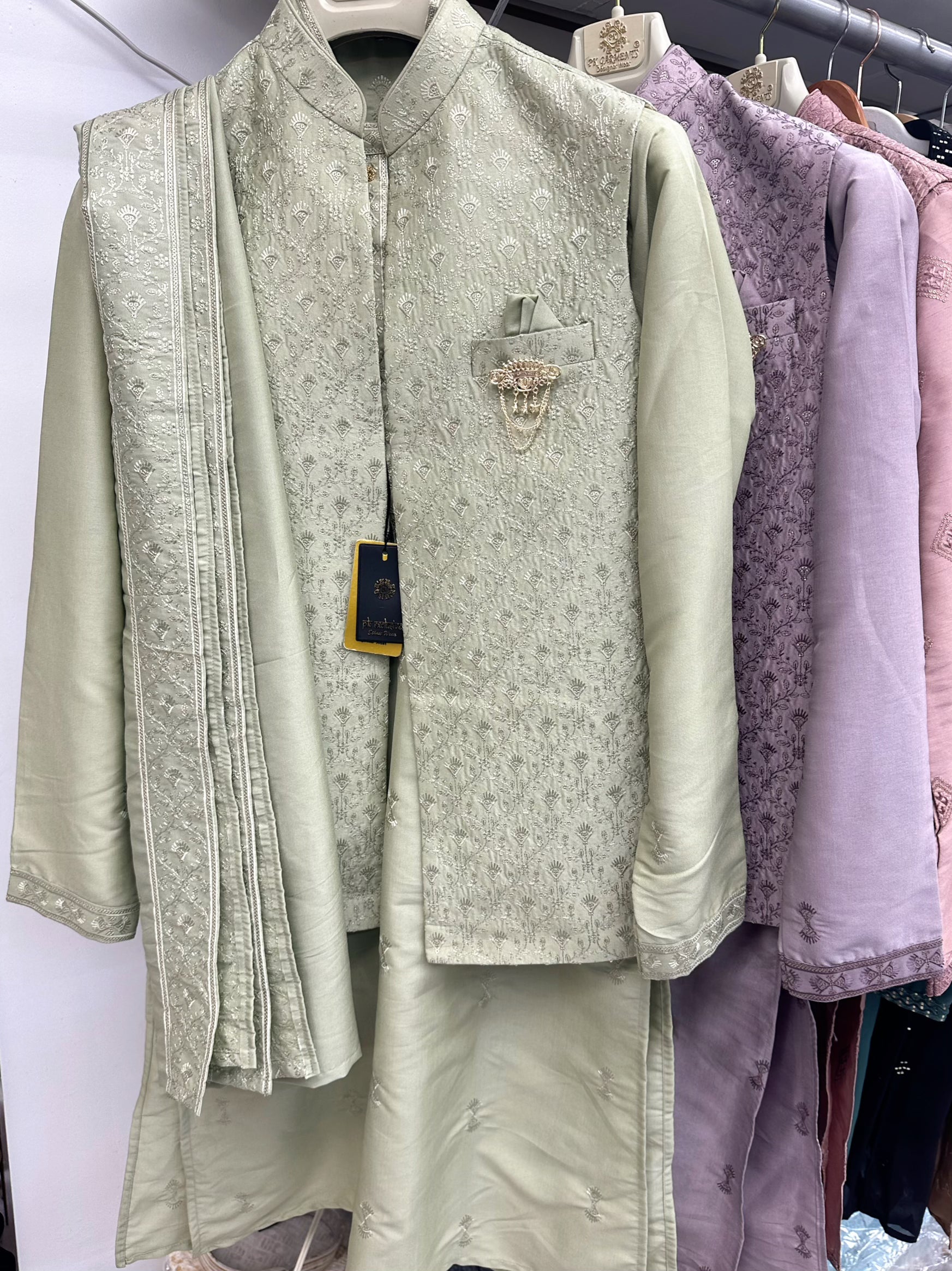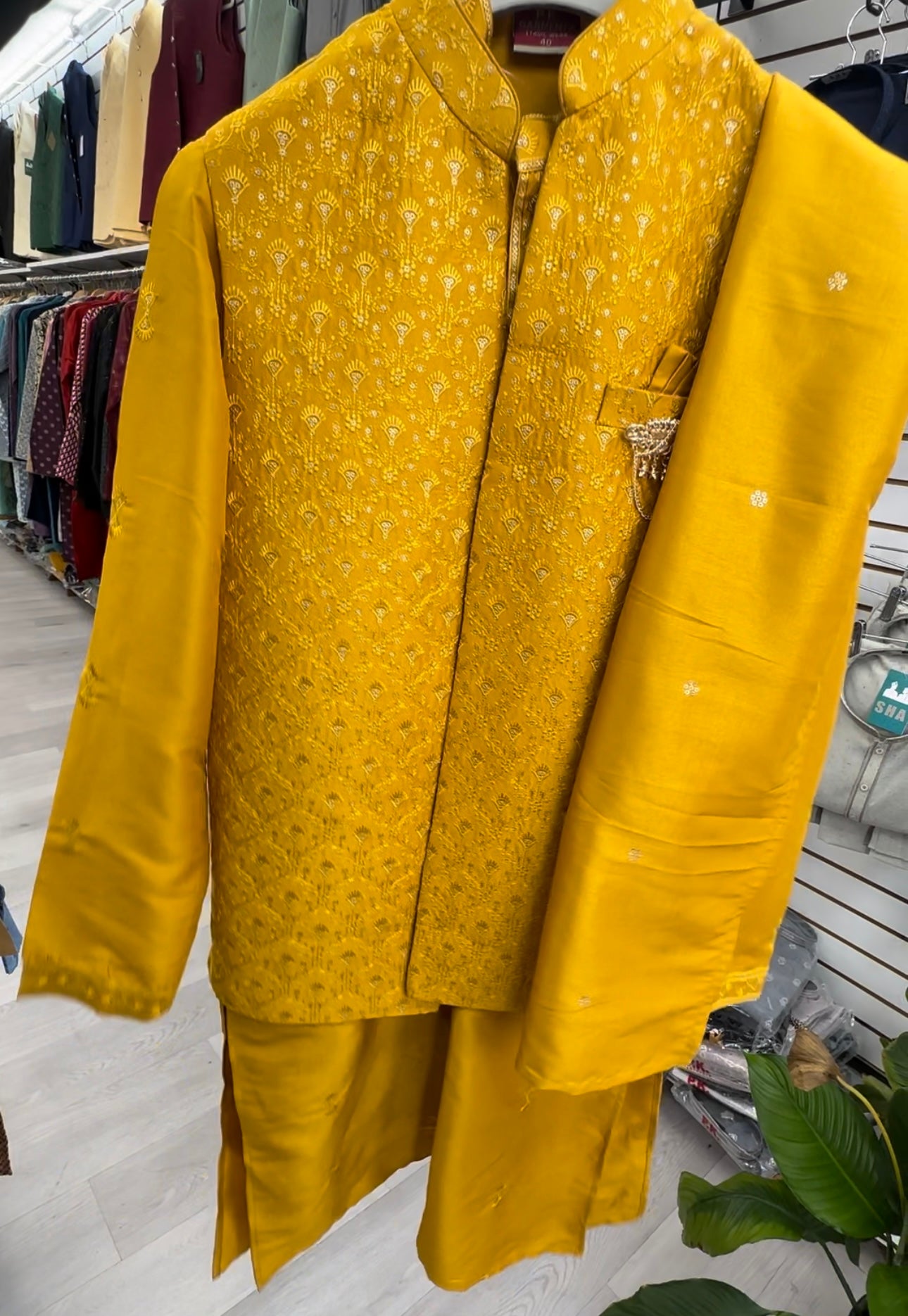 Silk fancy embroidered waistcoat with kurta and matching pants with matching duppata