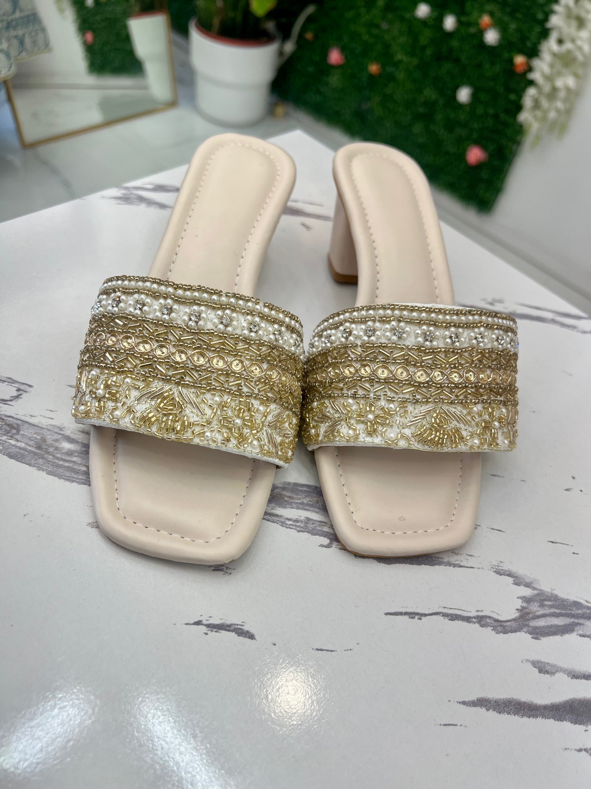 Made with extra cushion for extra comfort. 1 & 1/2 inch heels. Panjabi made. Match with your American size