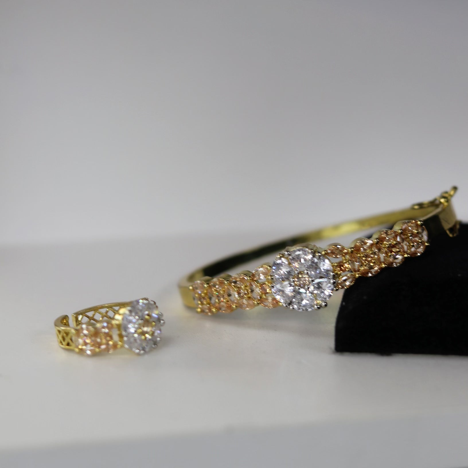Beautiful gold gem bracelet come in a set with the free size matching ring, perfect for an occasion or gift.