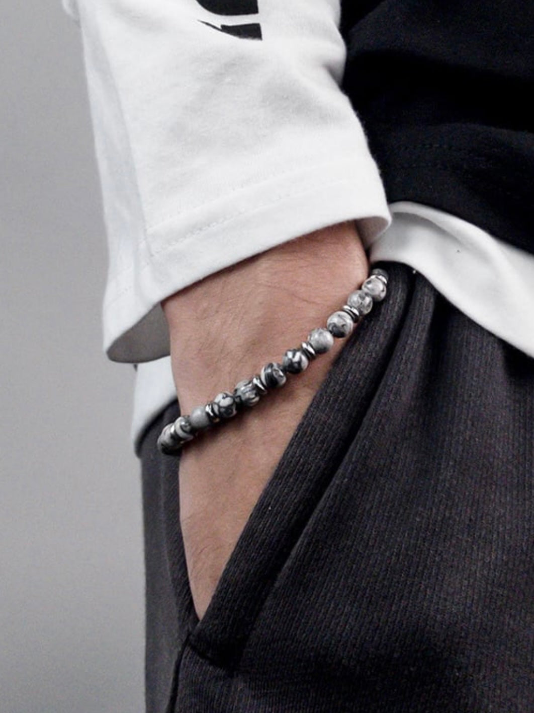 Titanium Steel Obsidian Geometric Vintage Beaded Bracelet