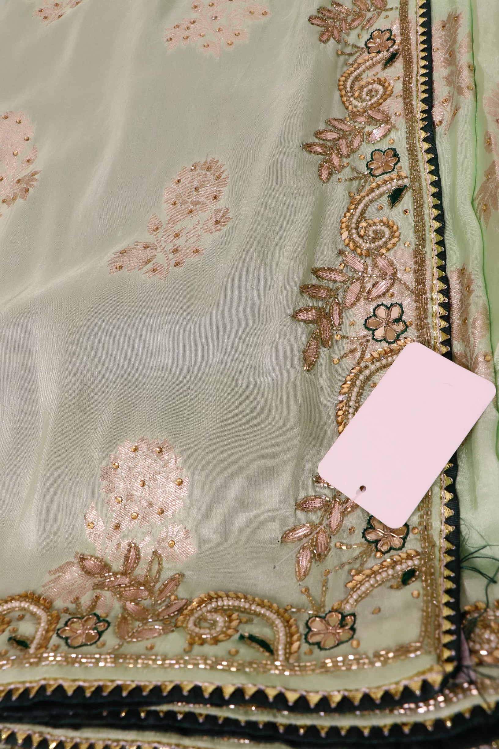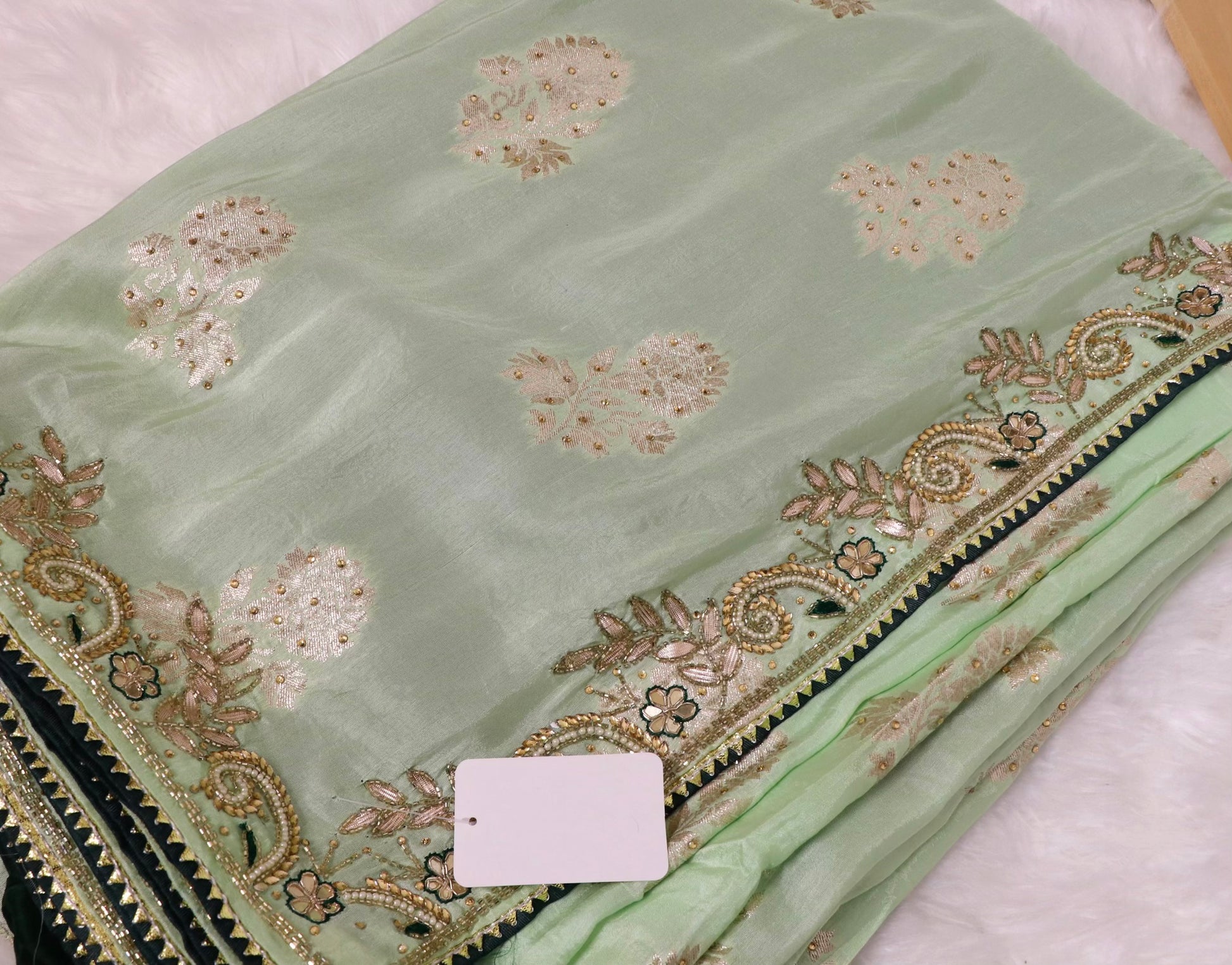 Khaddi katan lime green with stone work saree