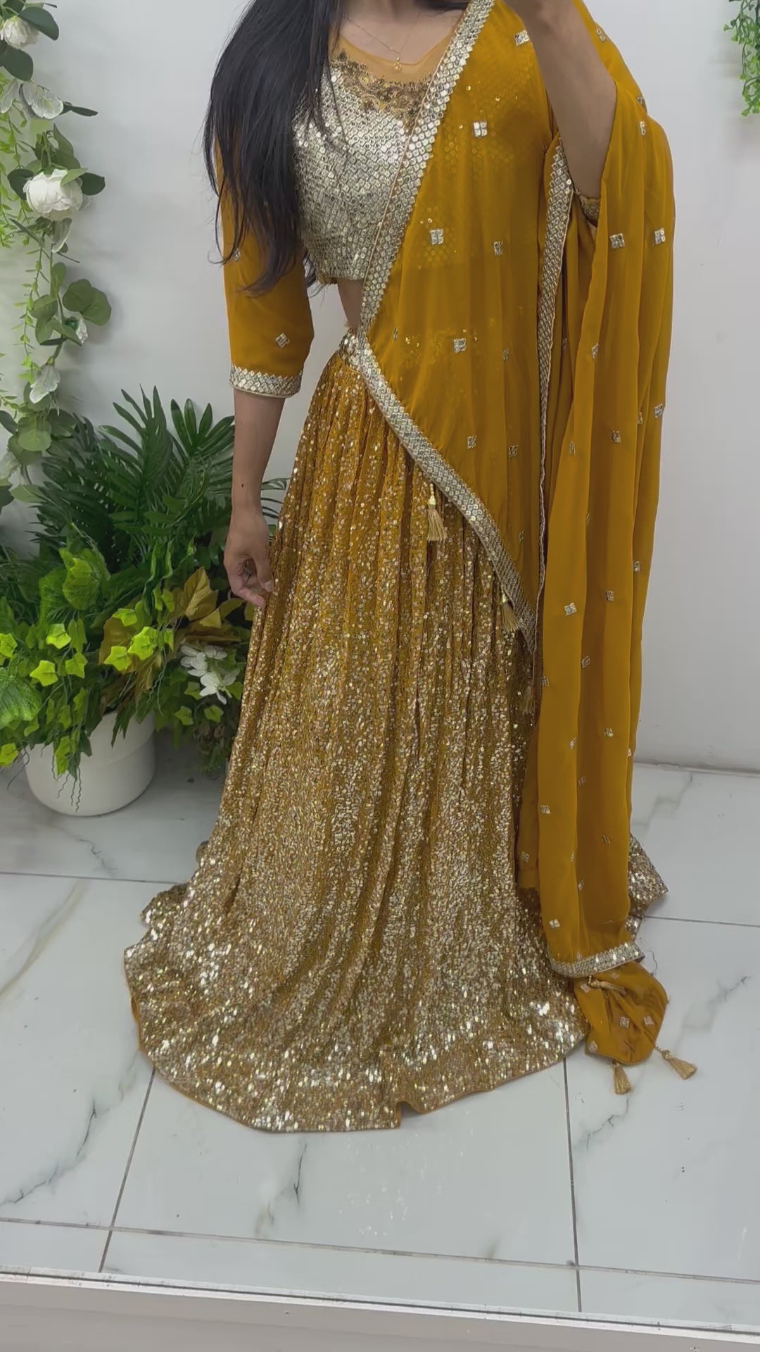 Very heavy & beautiful sequenced lehenga. The blouse have some hand work on the top
