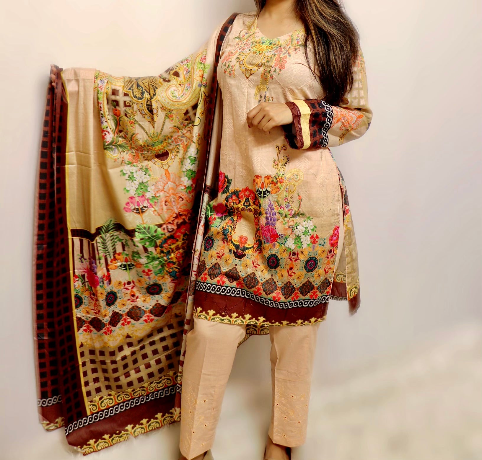 Light peach embroidered lawn suit