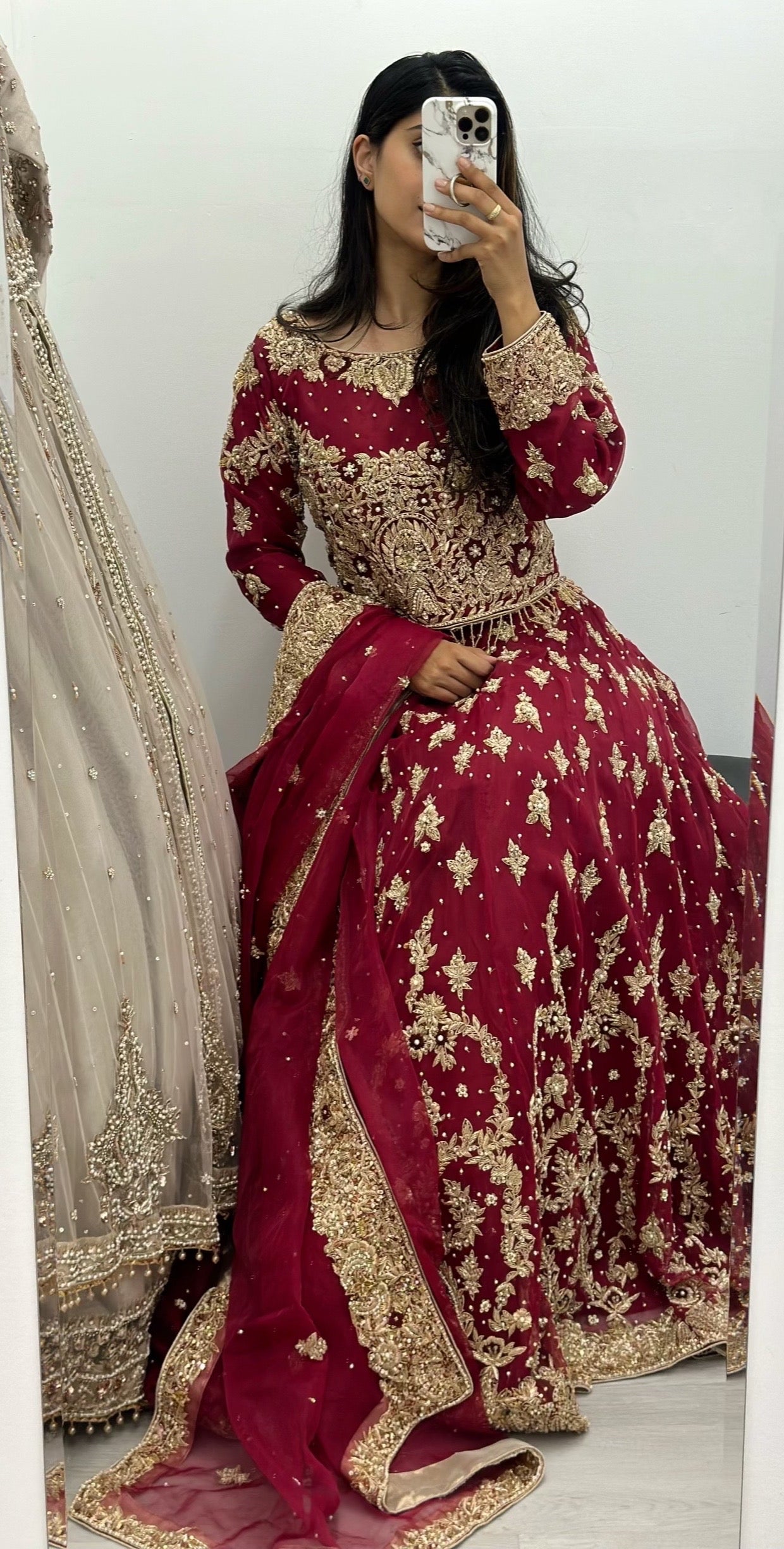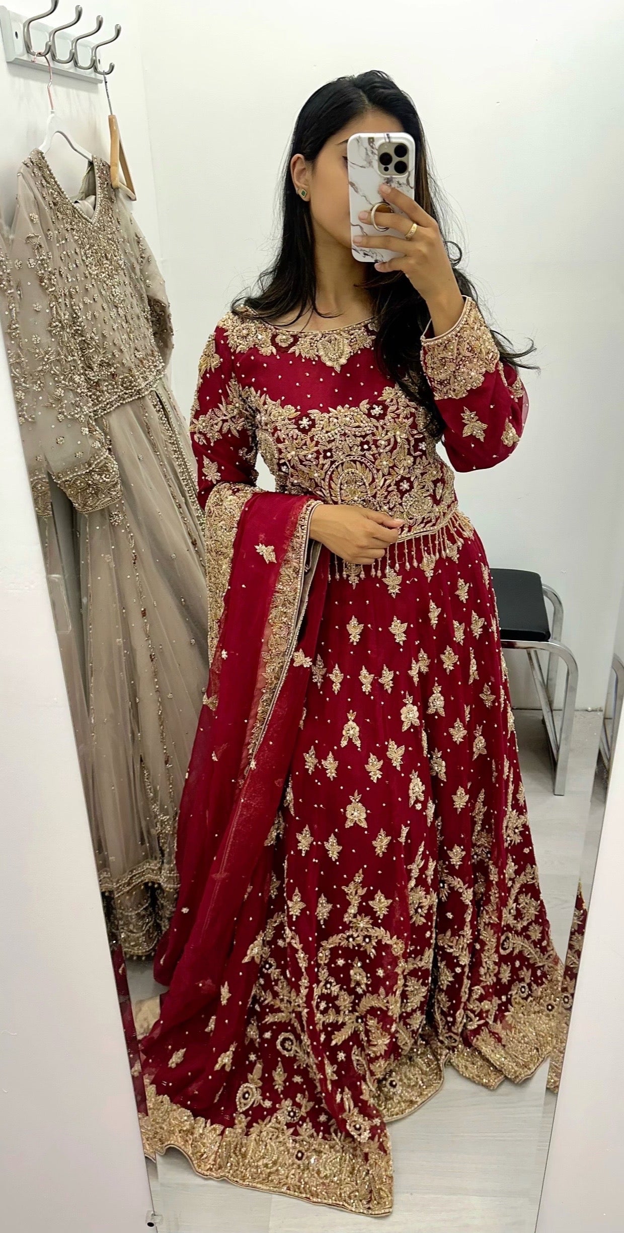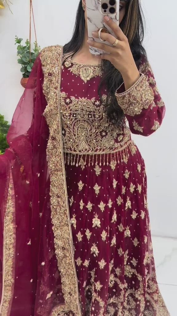 Heavy hand zardozi & stone beads work on organza. Skirt length standard 41 inch