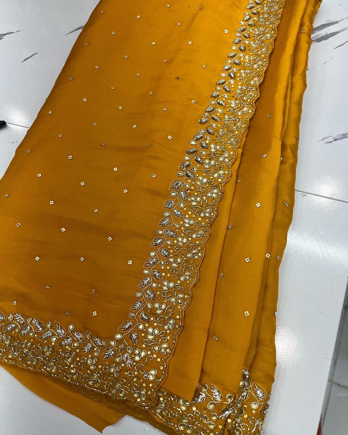 Crepe silk with zardozi hand work