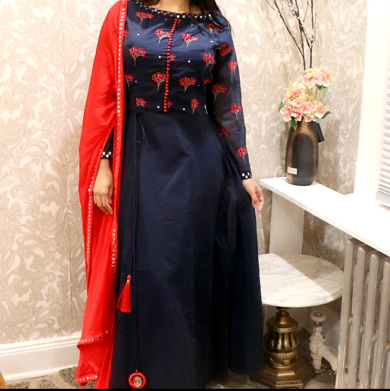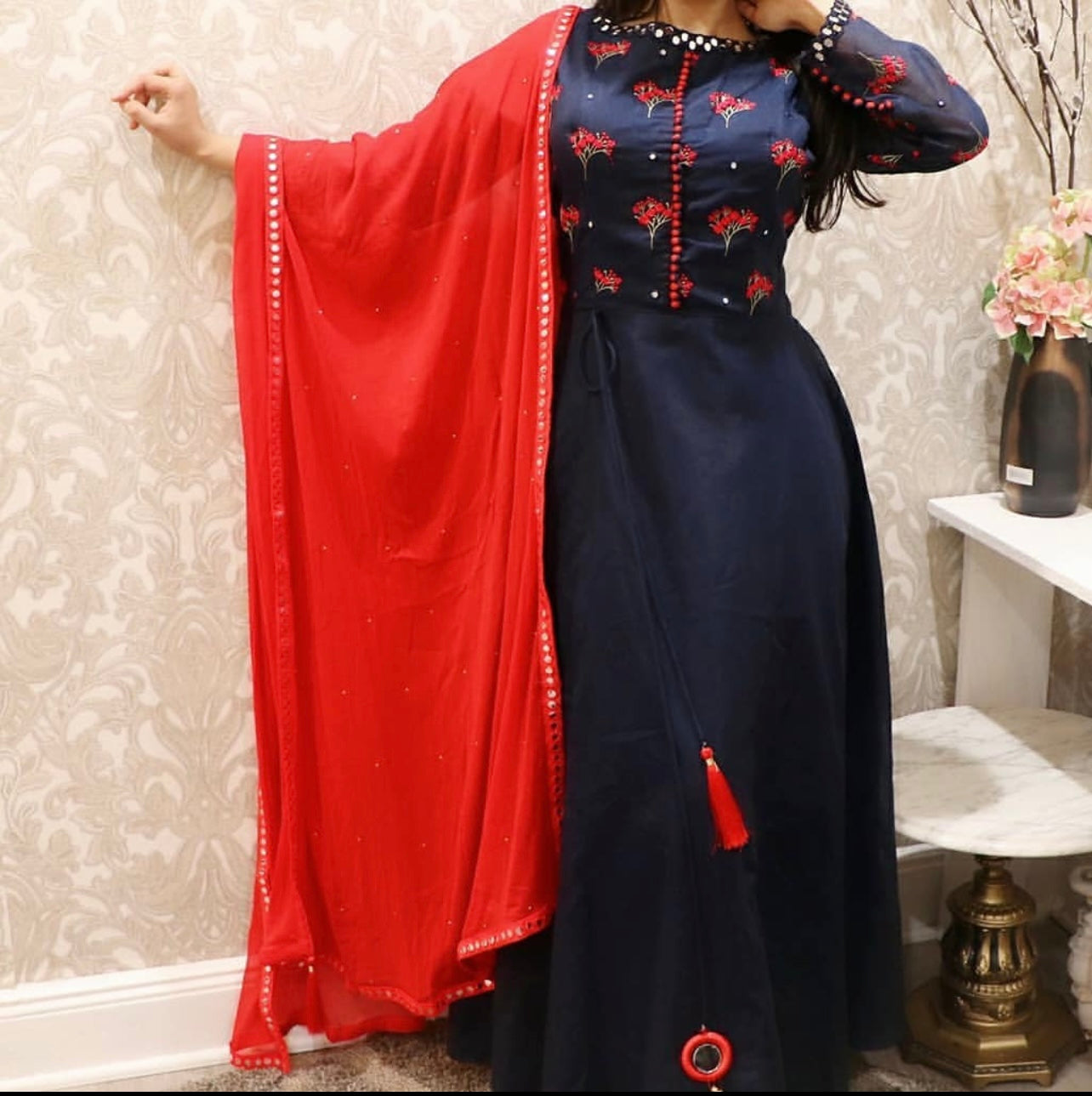 Navy blue mirror anarkali