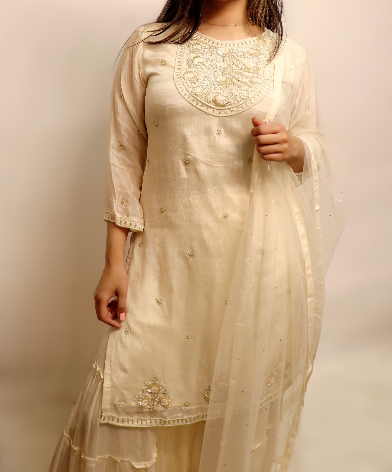 Off white gharara suit