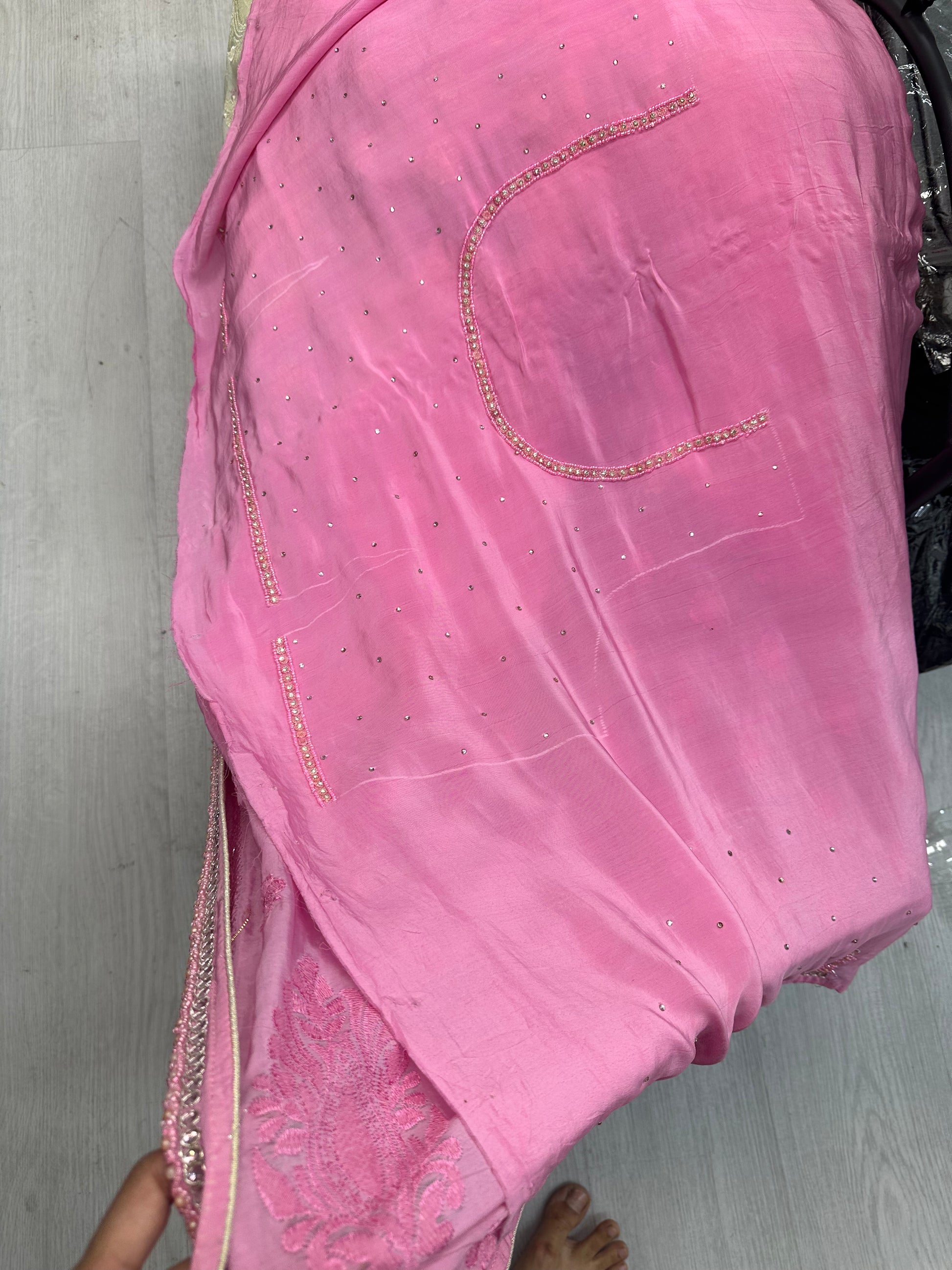 Heavy beads and stone with embroidery work and unstitched blouse piece