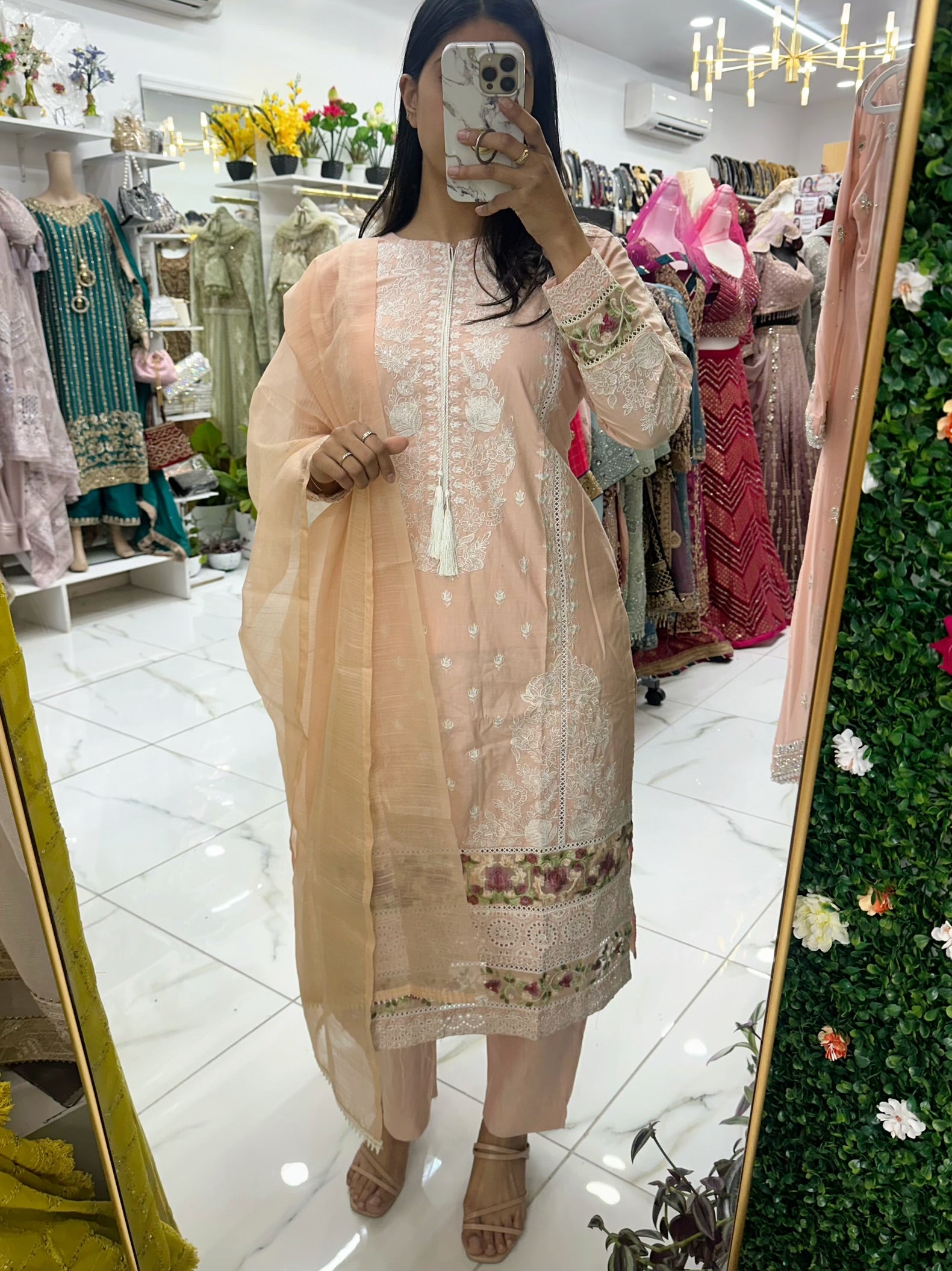 Peach embroidered chikankari suit
