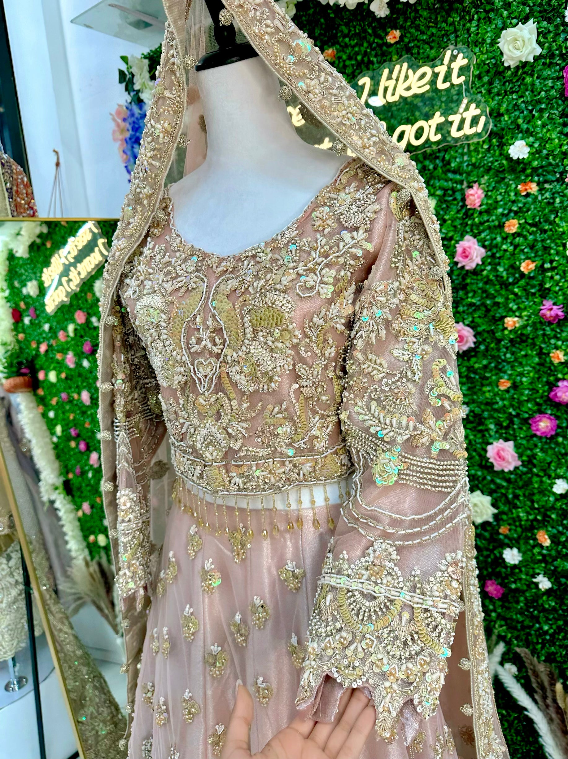 Pure muslin with all hand work, modest blouse. Exceptional stitching. Skirt length is moderate 41 inch long.