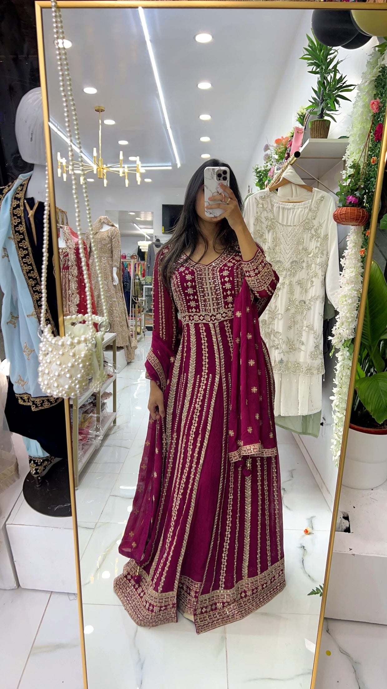 Beautiful plum color gown, all over front and back embraces with added stone on it for extra shine