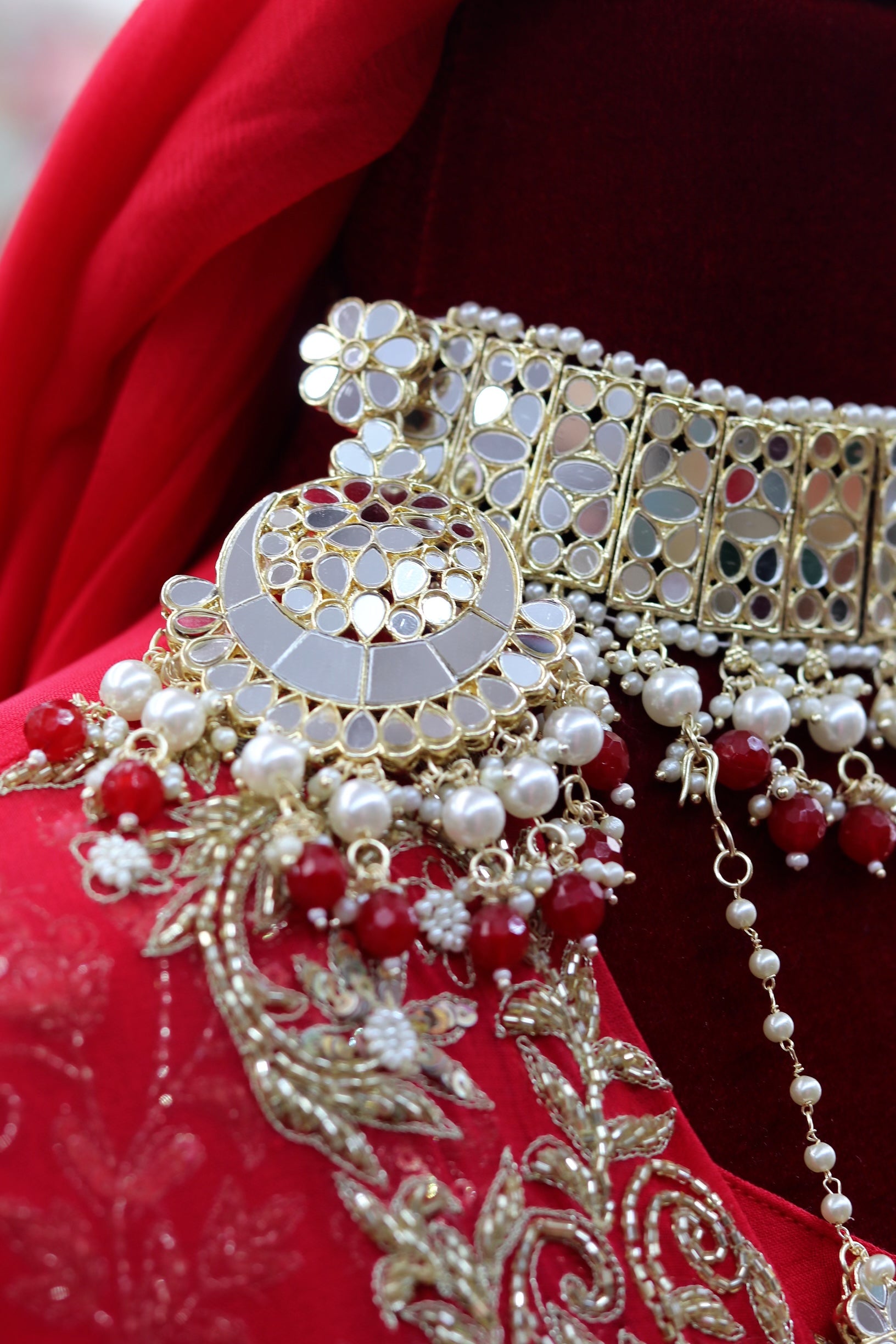 Red mirror choker bridal set
