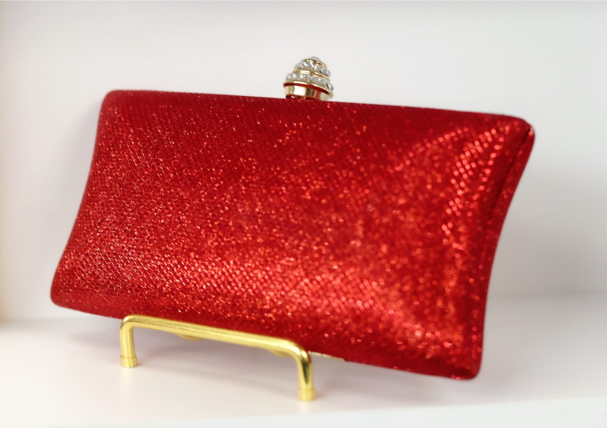 Red shimmery party purse
