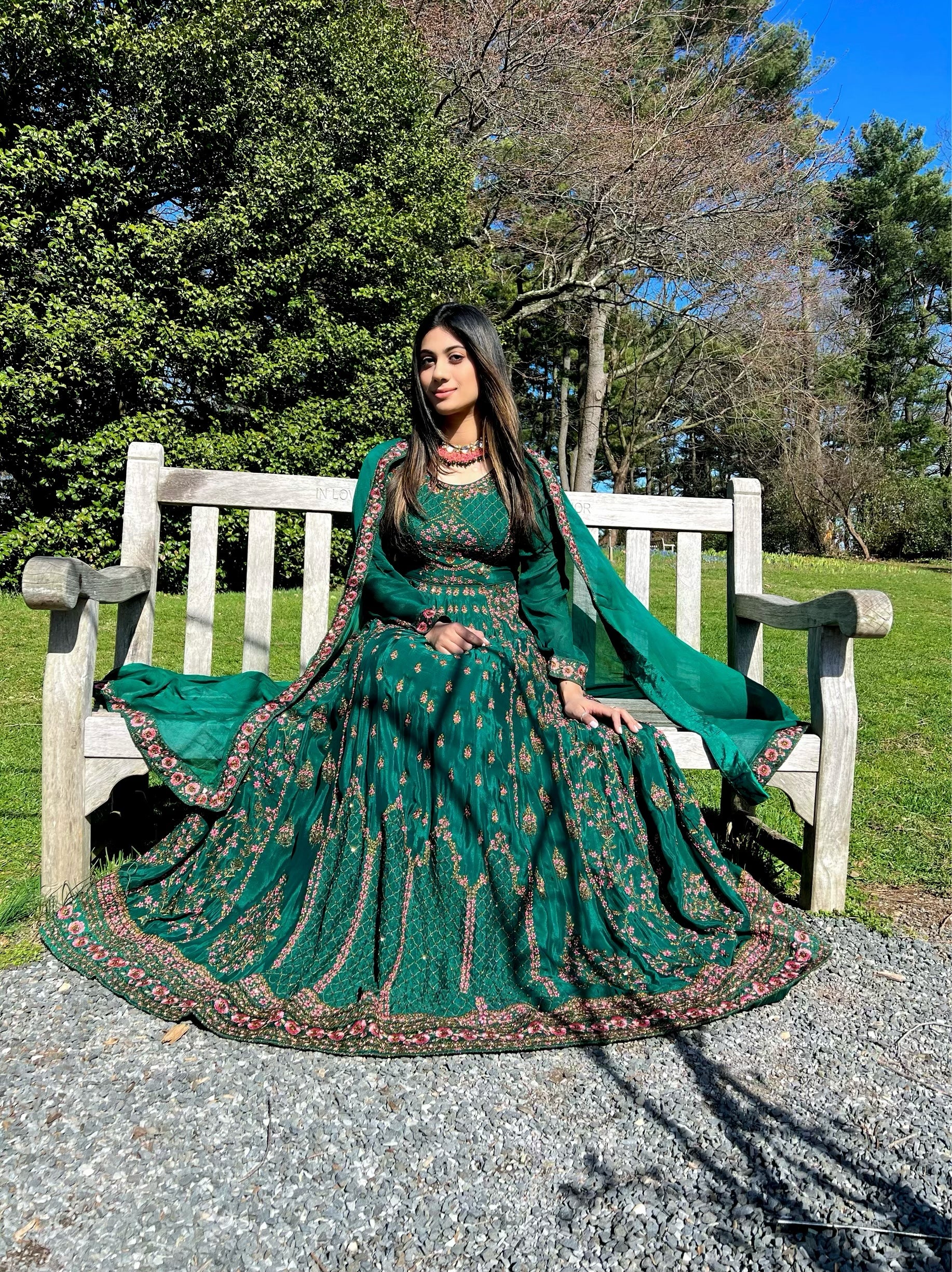 Deep emerald green party gown set