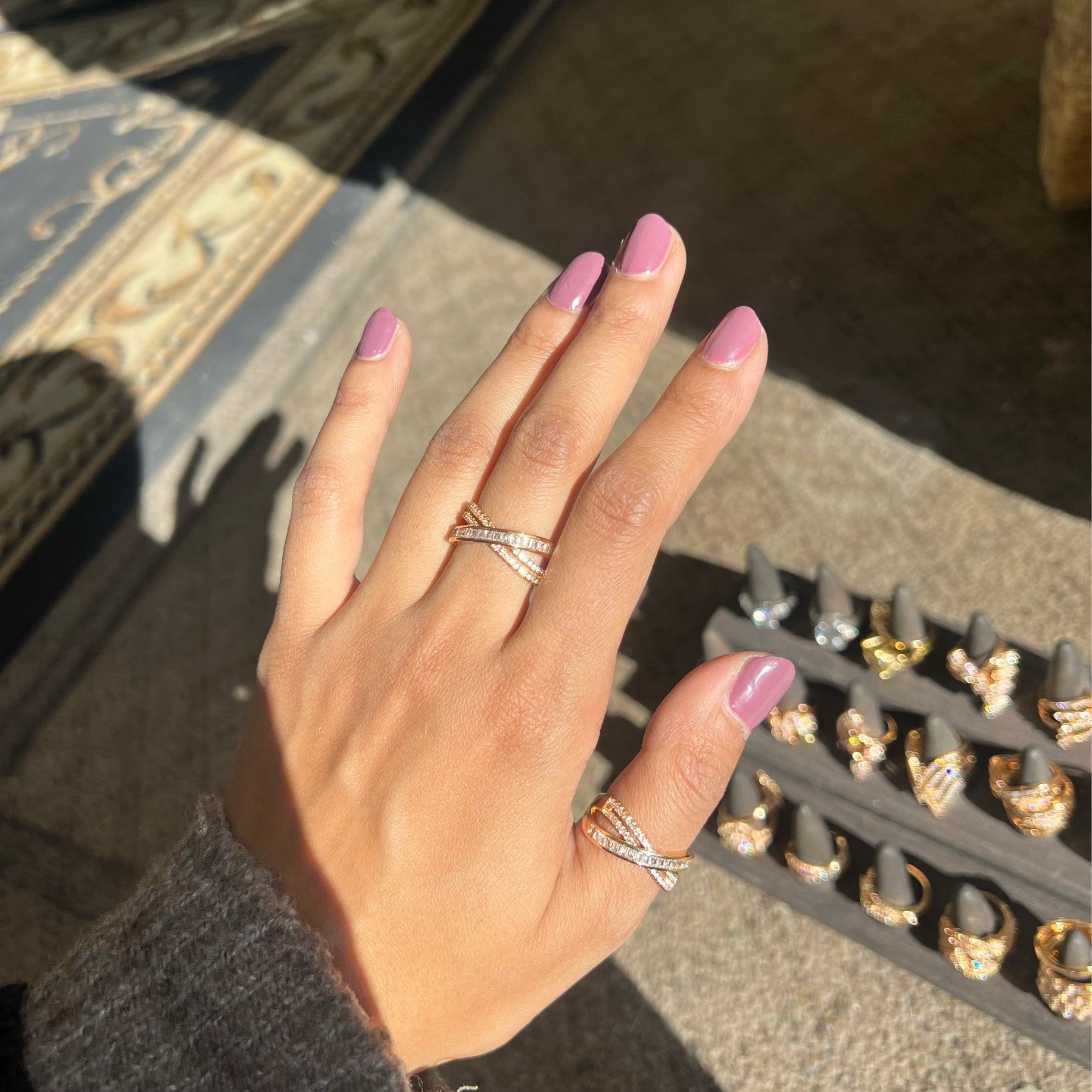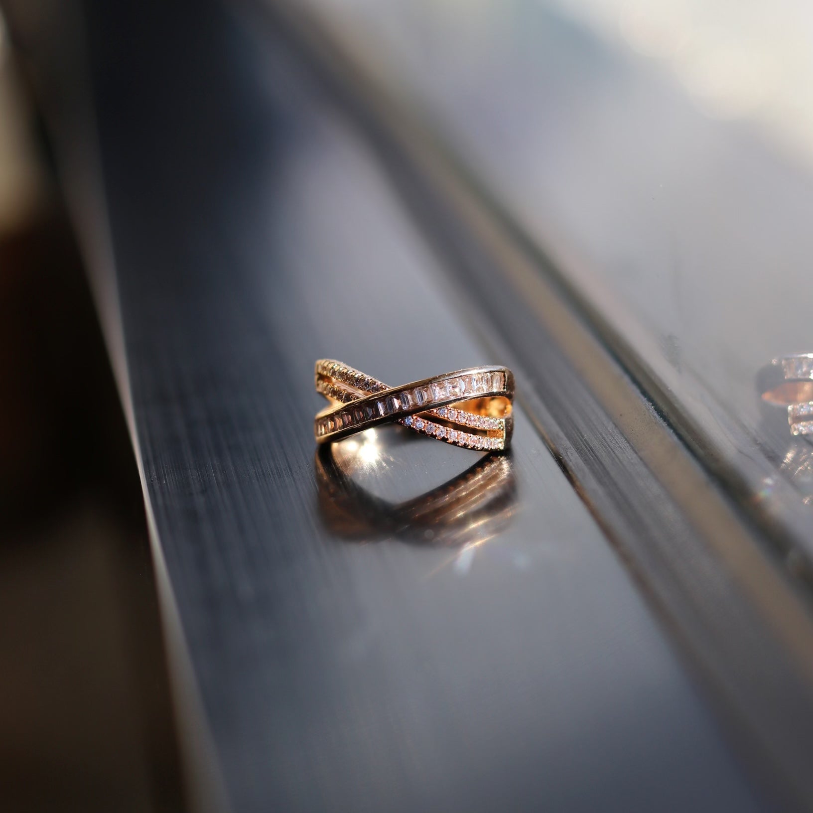 Side cross rose gold ring