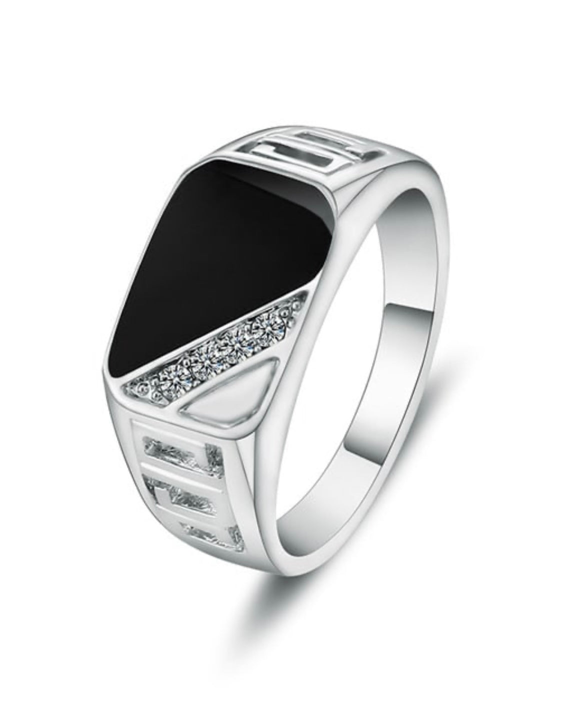 Silver And Black Triangle Vintage Band Ring