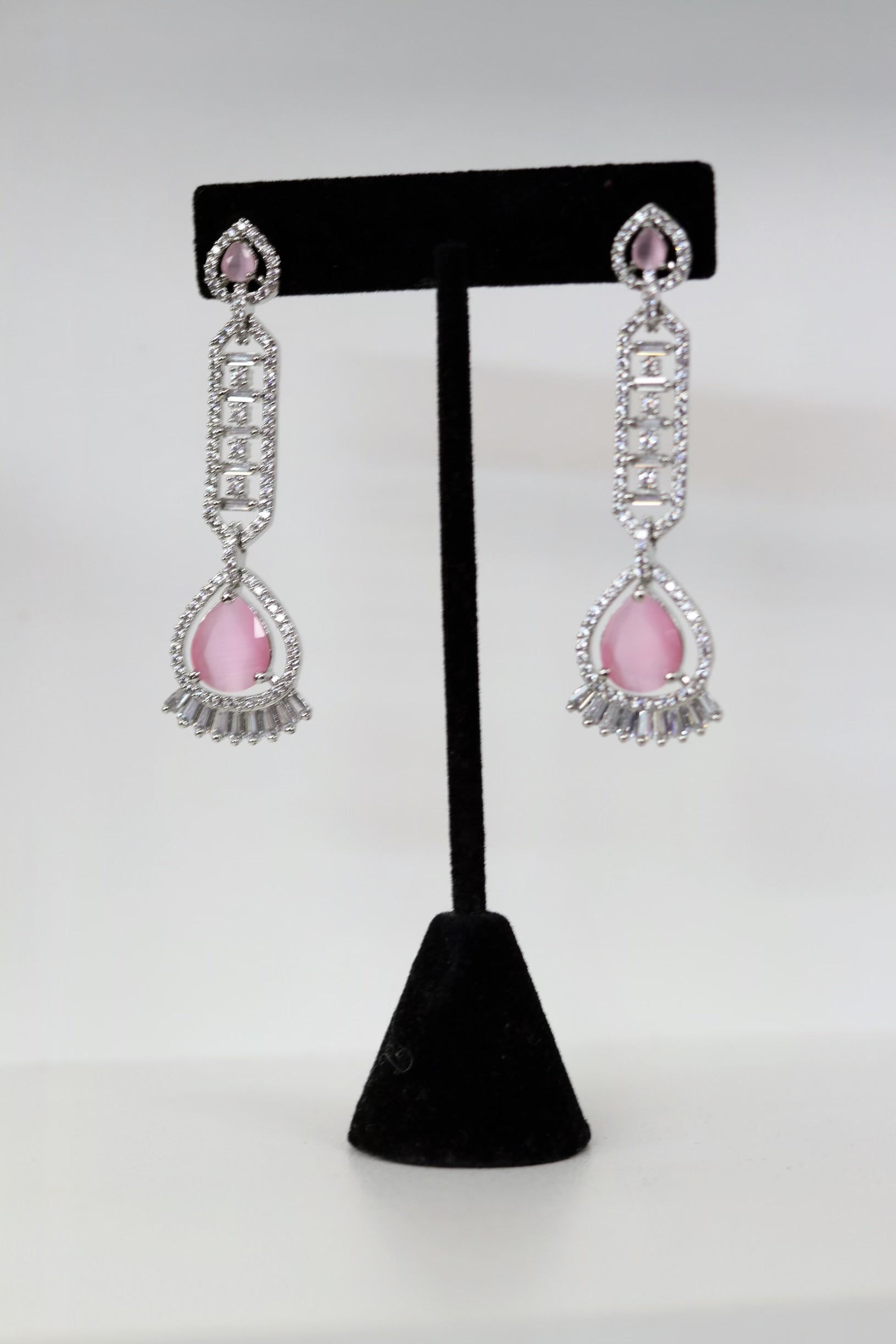 Silver plated pink gem earrings