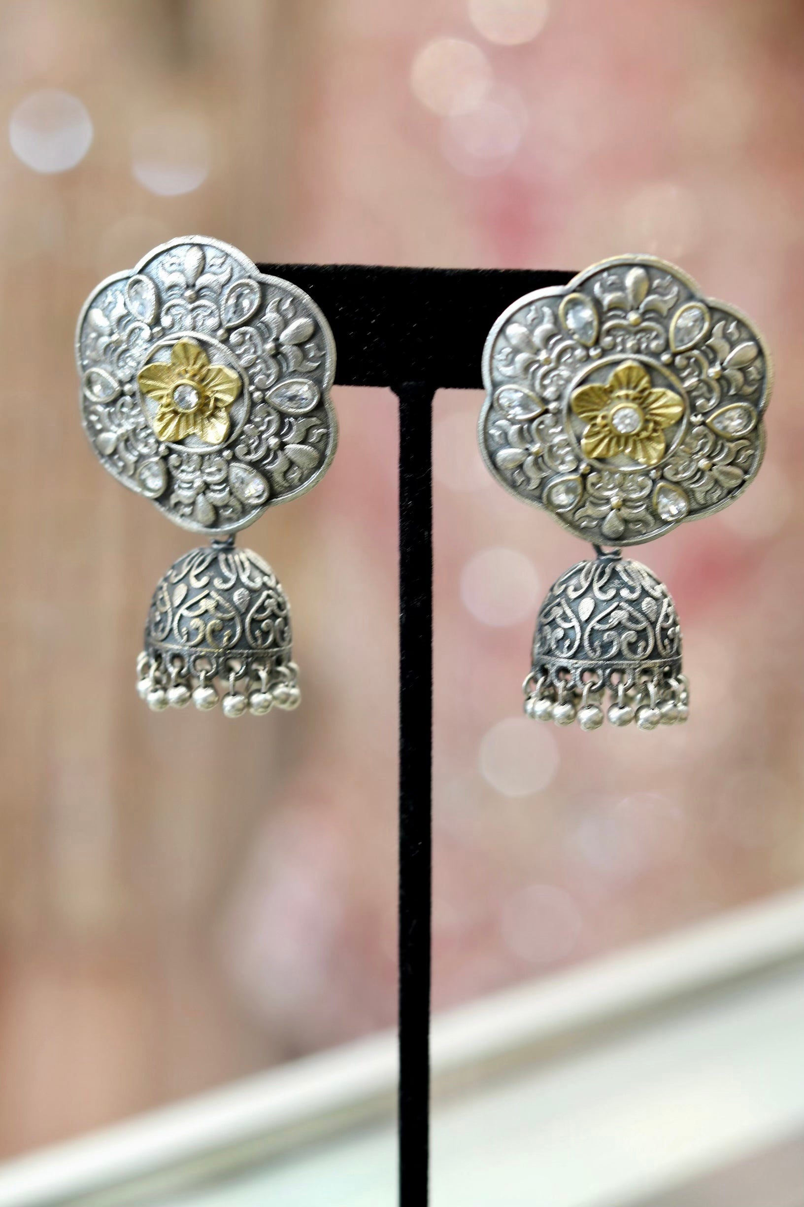 Traditional oxy gold and silver jumka