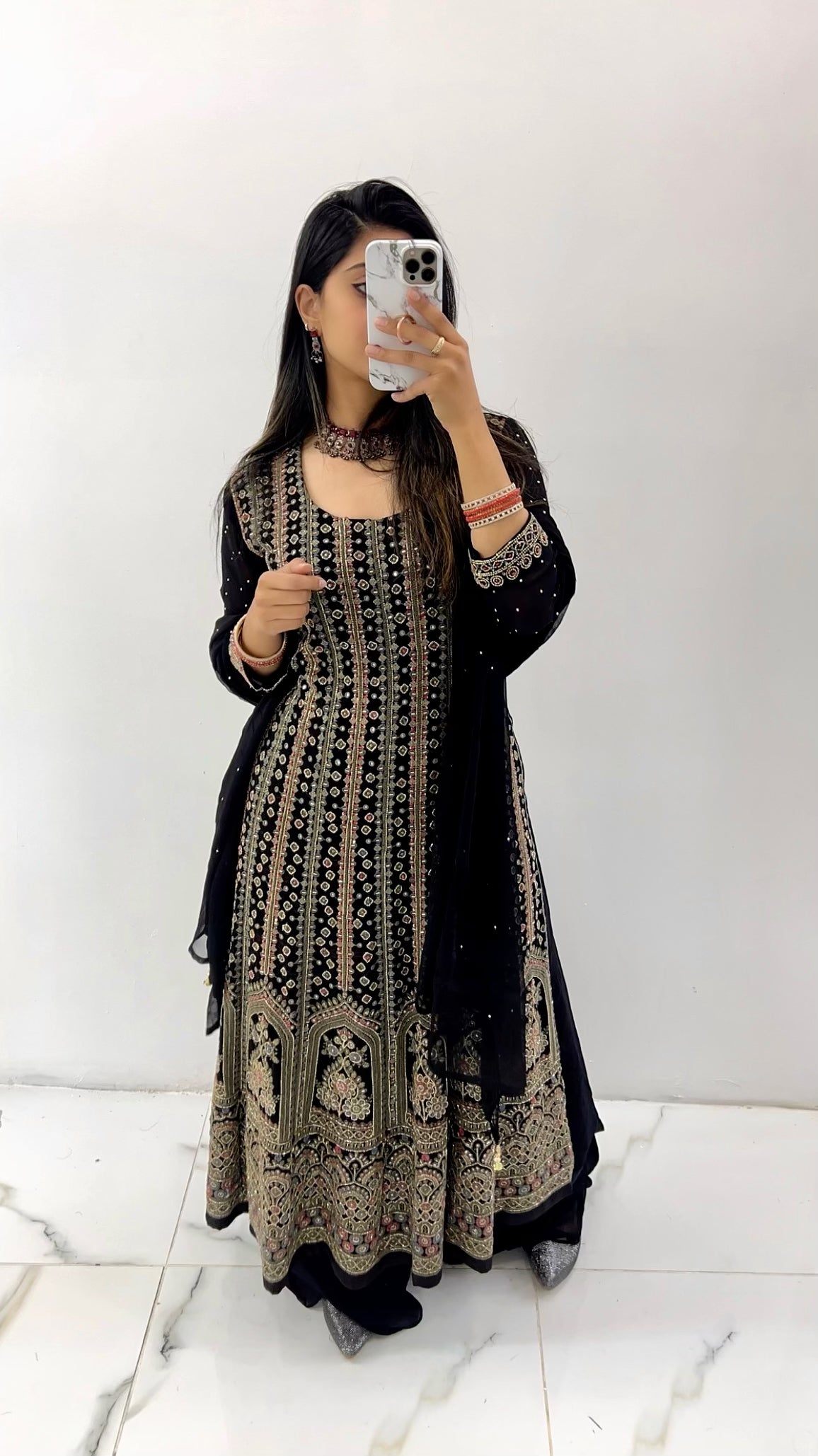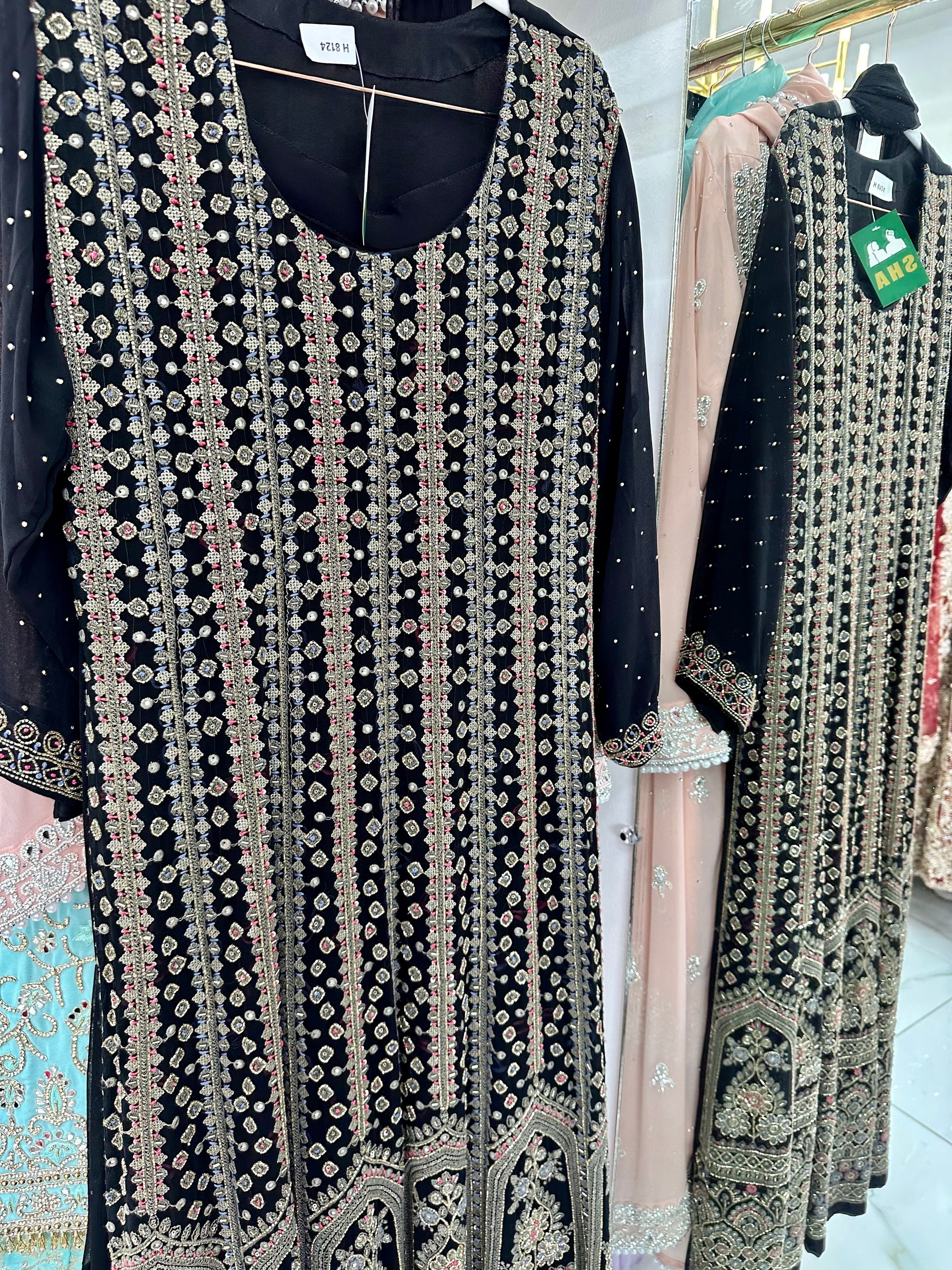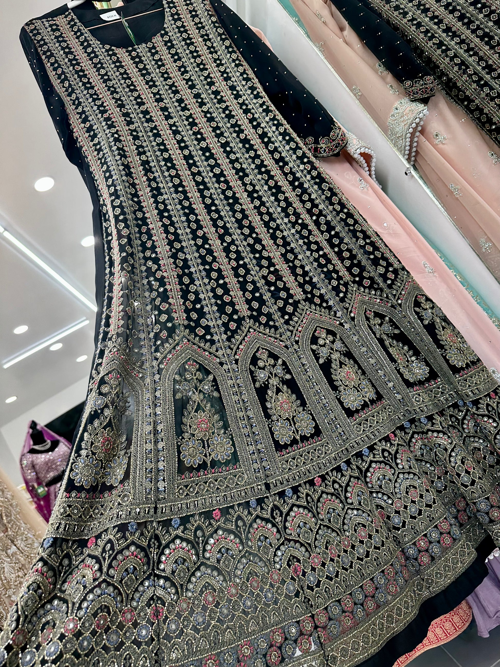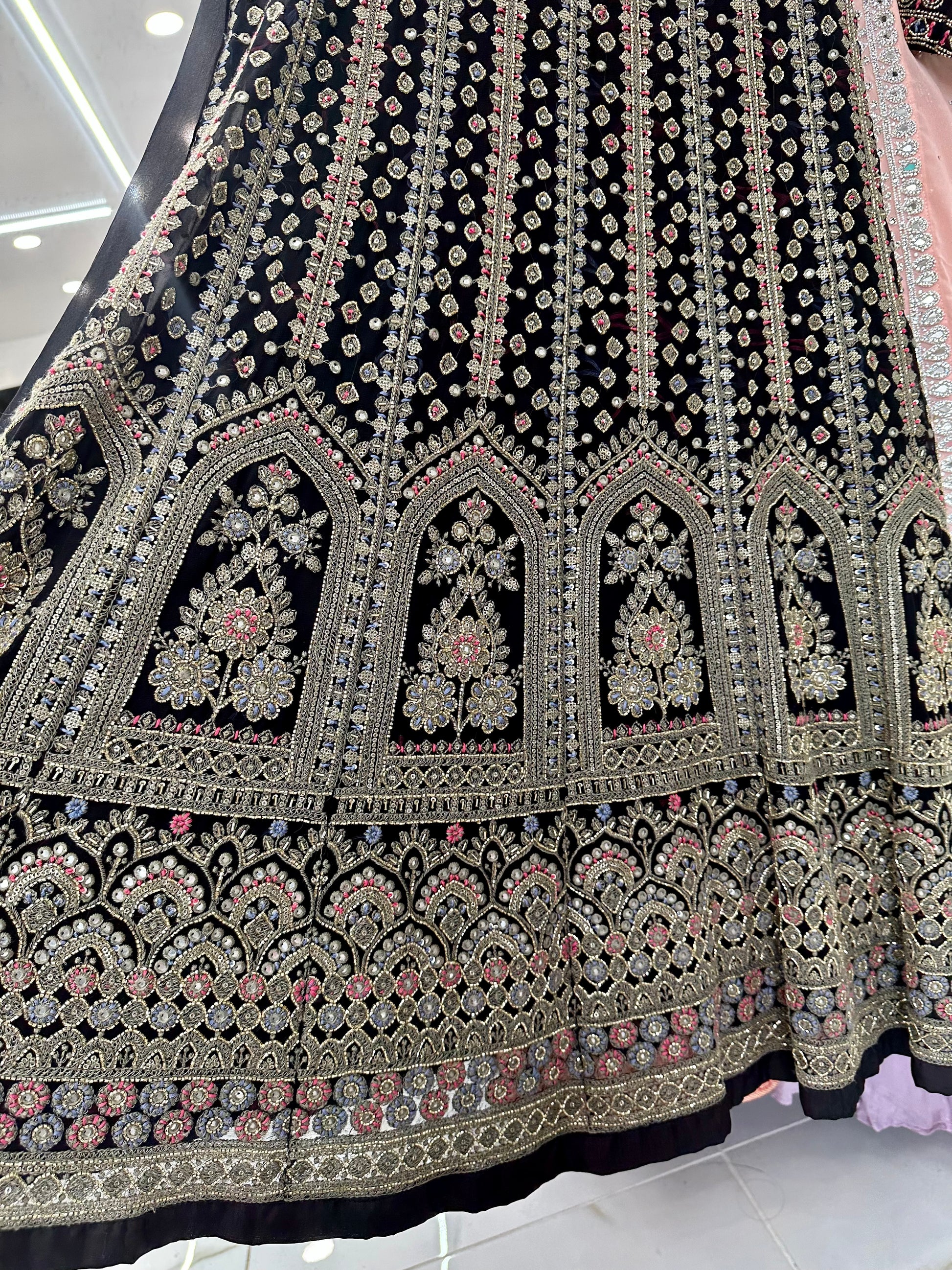 Black lakhnavi work suit with wide leg pants
