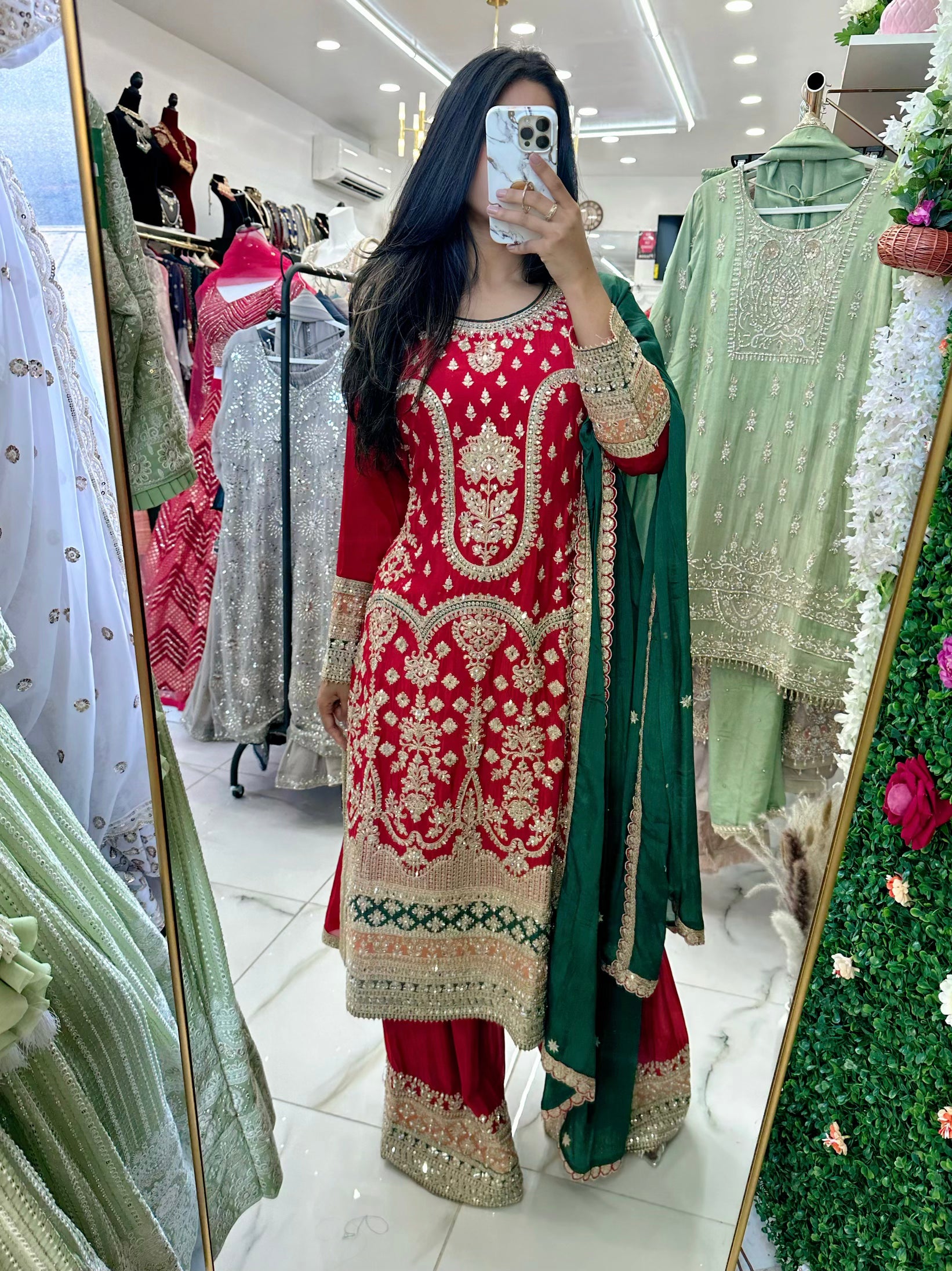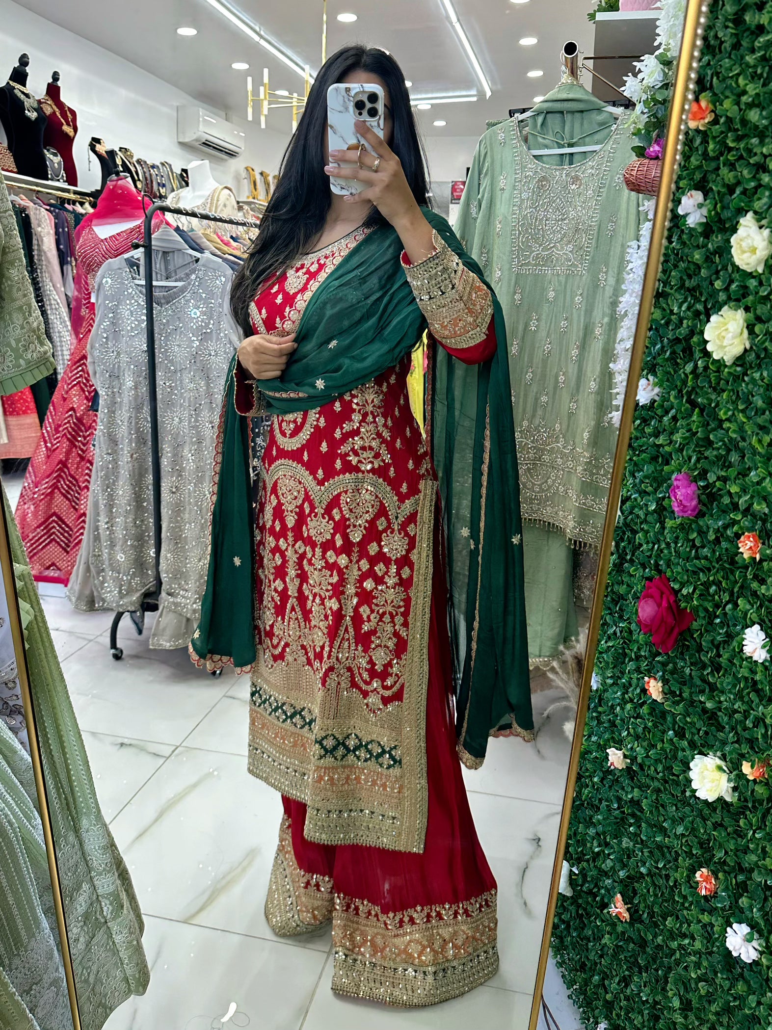 Long shirt with wide leg palazzo , full silk with hand work and gold embellishment and stone work