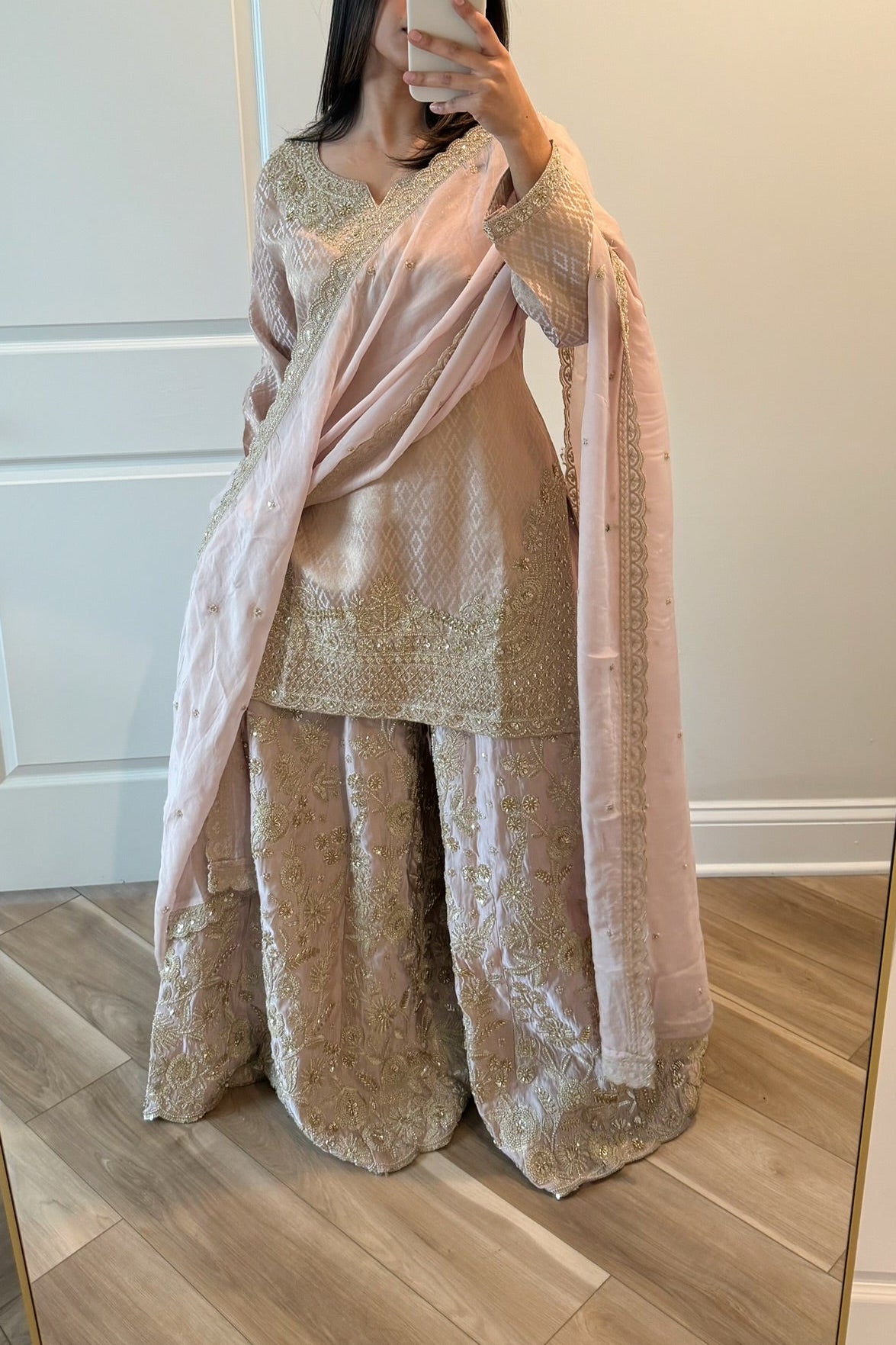 Heavy hand work silk pants with Banarasi silk kameen and pure muslin duppata