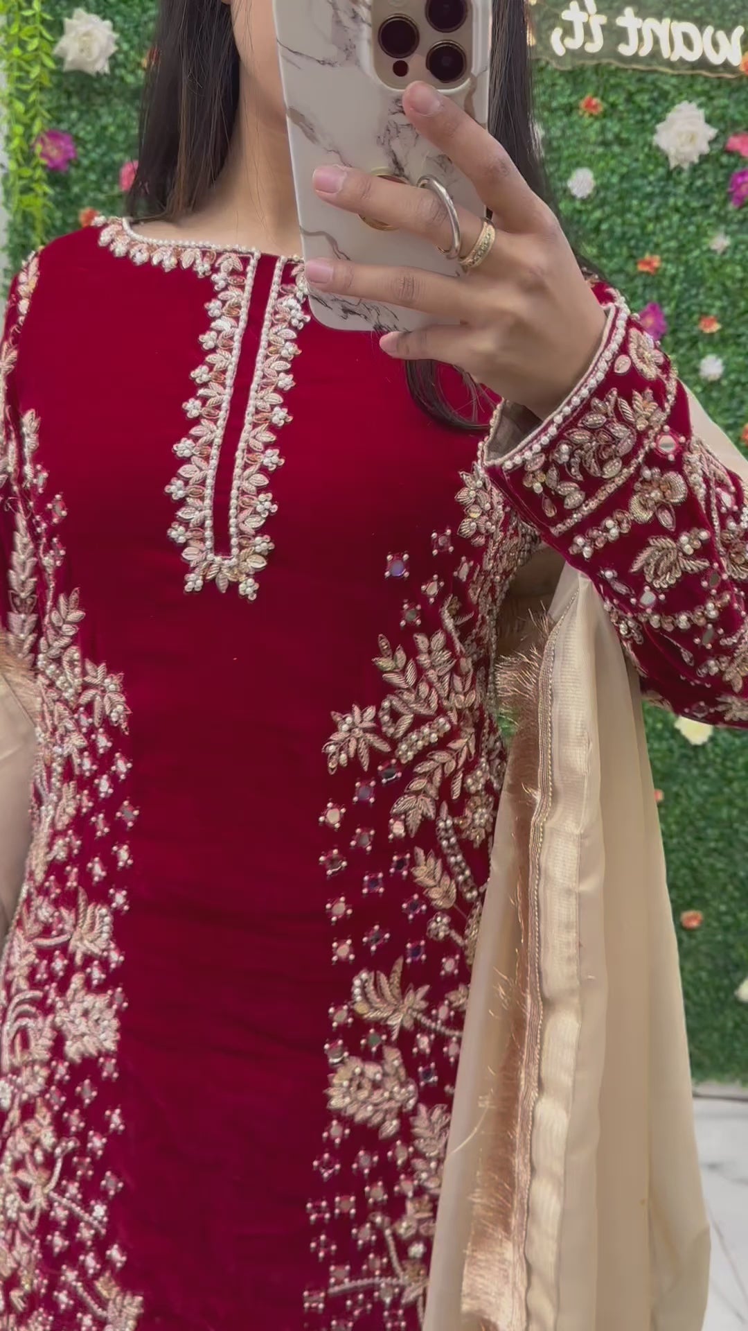 Maroon velvet heavy party wear suit