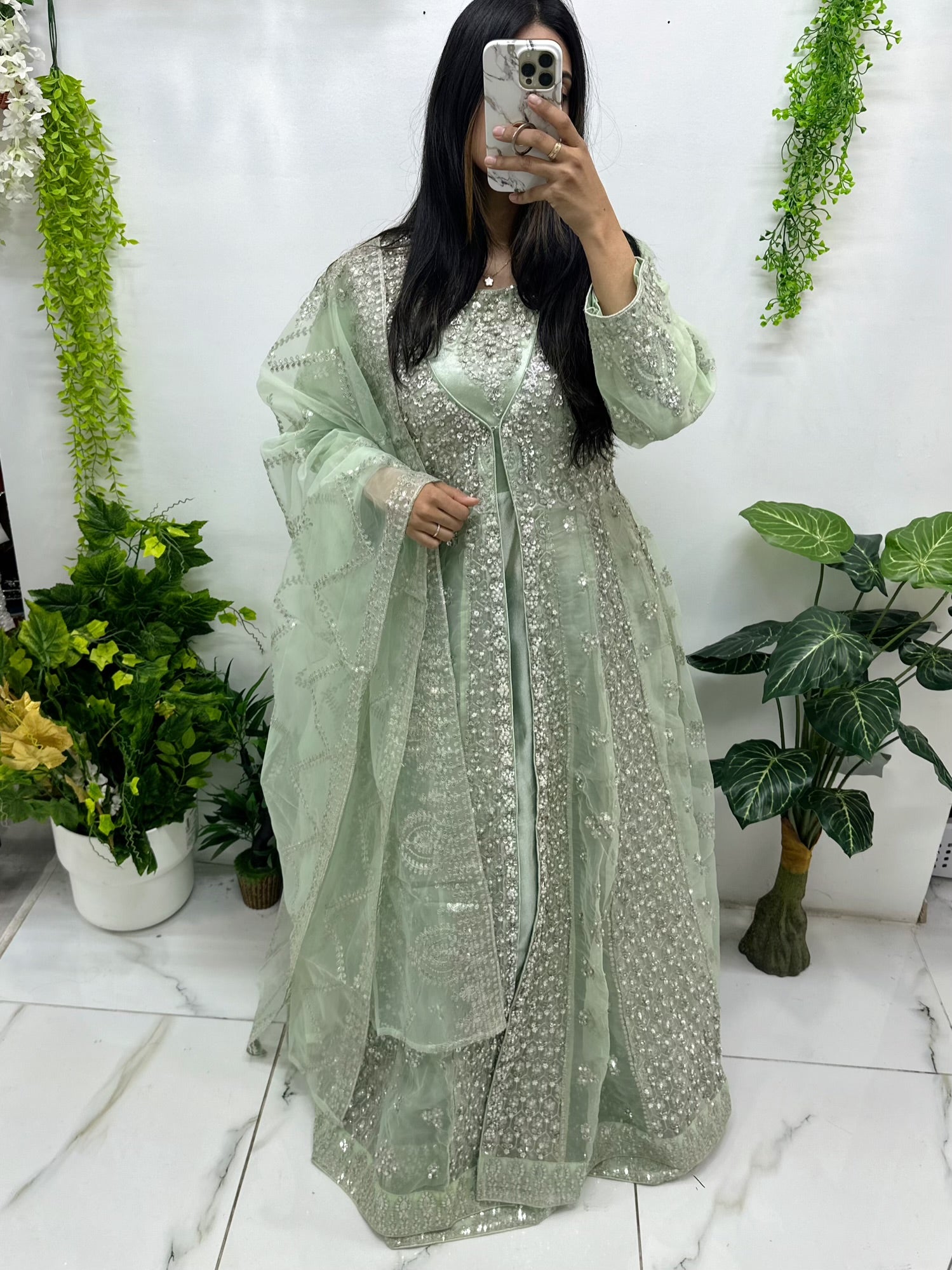 Very beautiful organza suit will full lining inner maxi.