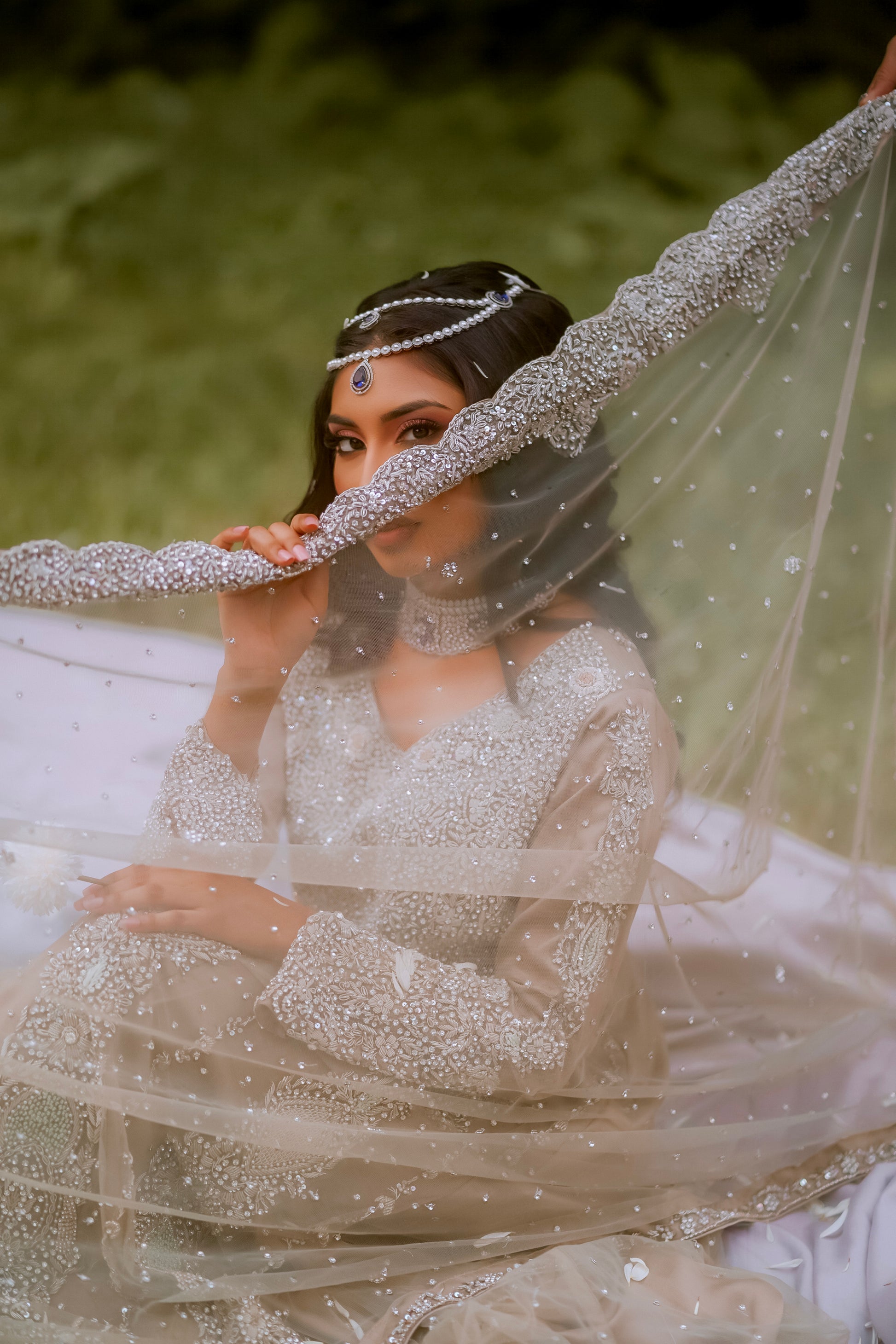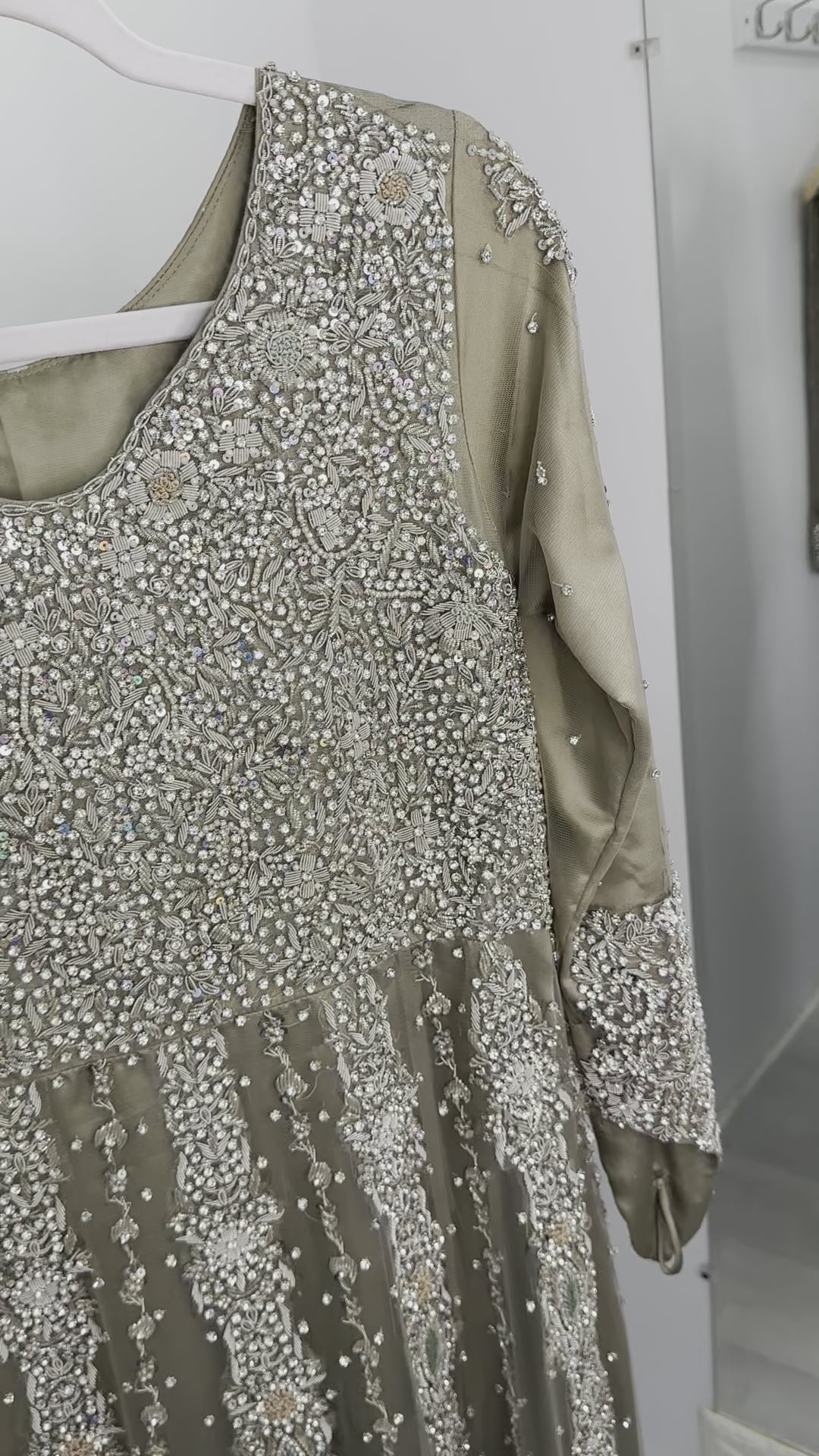 Bridal Light taupe all silver hand work with stone gown