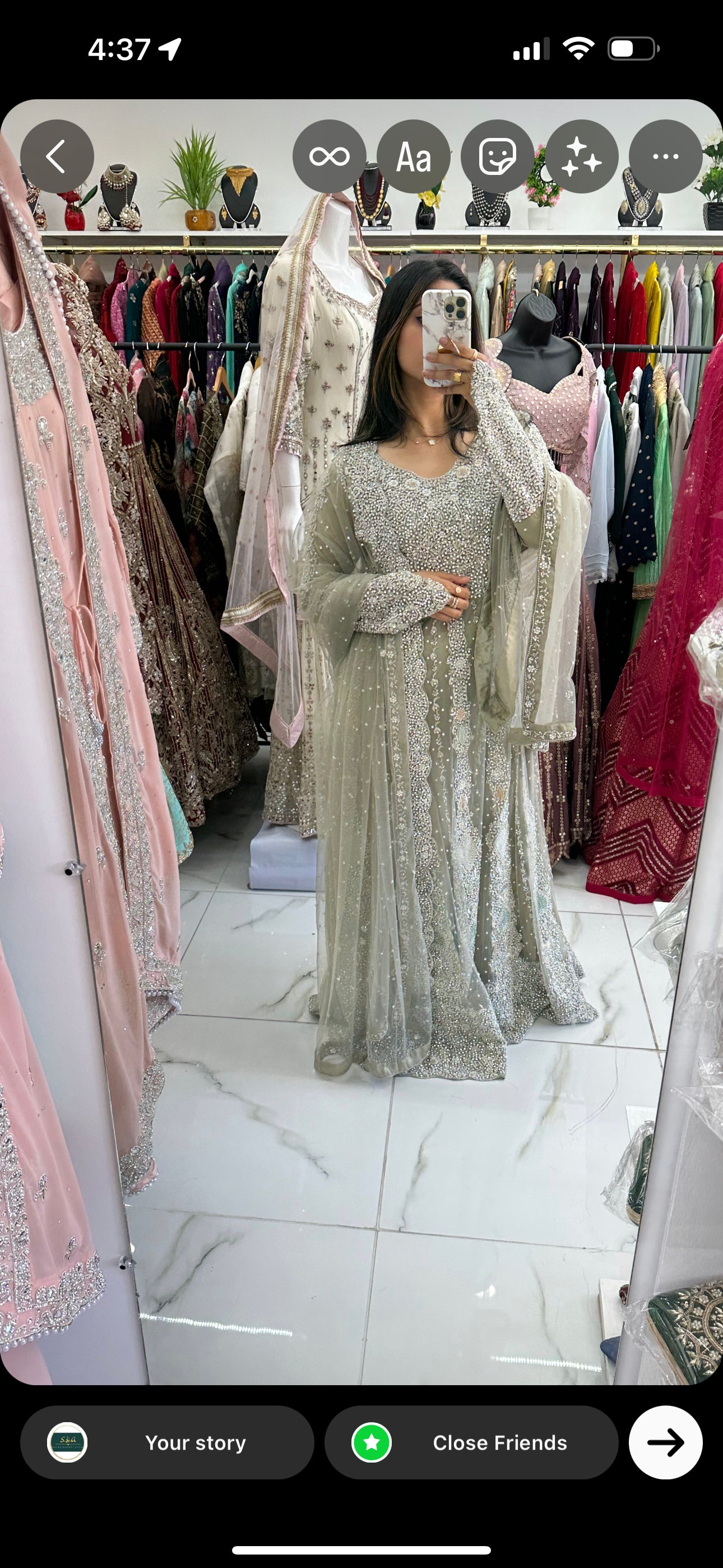 Full net gown with beautiful hand work stone attached details with heavy border duppata. Silk inner